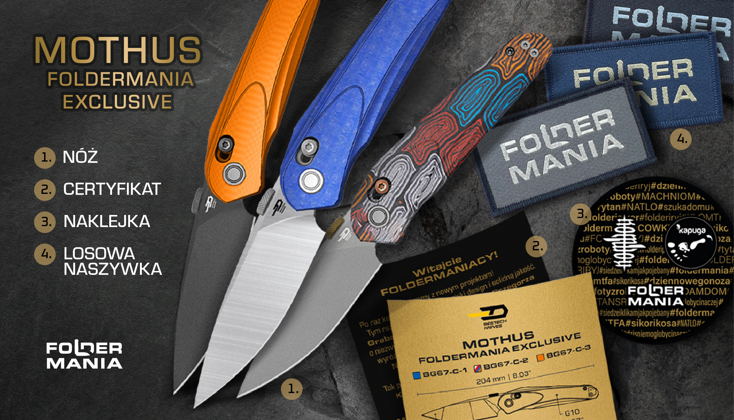 Nóż Składany Bestech Mothus Foldermania Exclusive BG67-C-3 Black Stonewashed 14C28N Orange G10 Crossbar Lock Thumb Disc