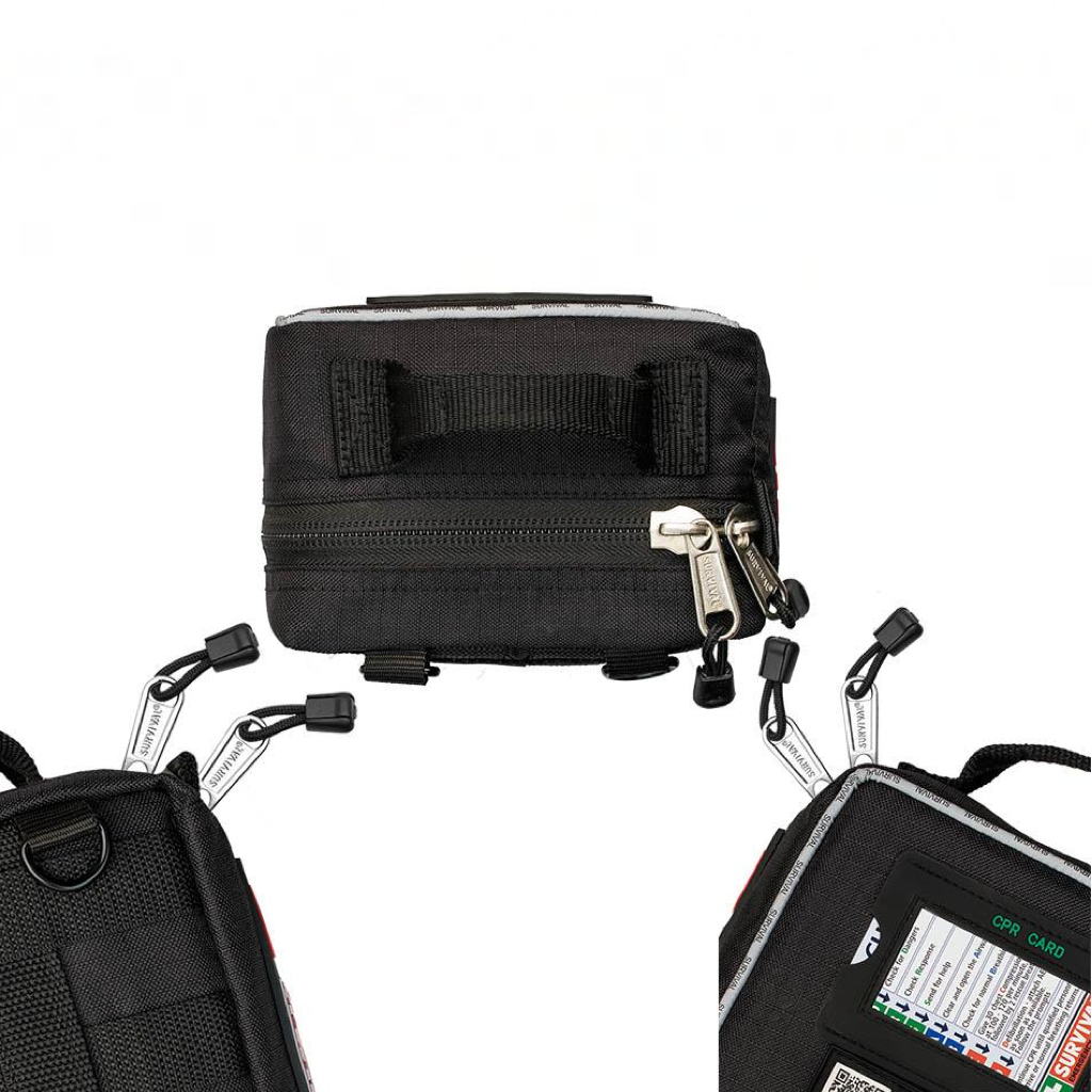 Apteczka SURVIVAL Vehicle First Aid KIT jest przeznaczona do zabezpieczenia urazów w podróży, wypadków drogowych oraz nagłych sytuacji zdrowotnych w samochodzie, zapewniając kompletne wyposażenie do podstawowych działań ratunkowych.