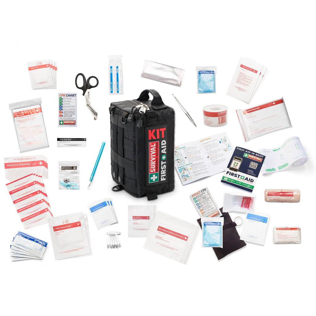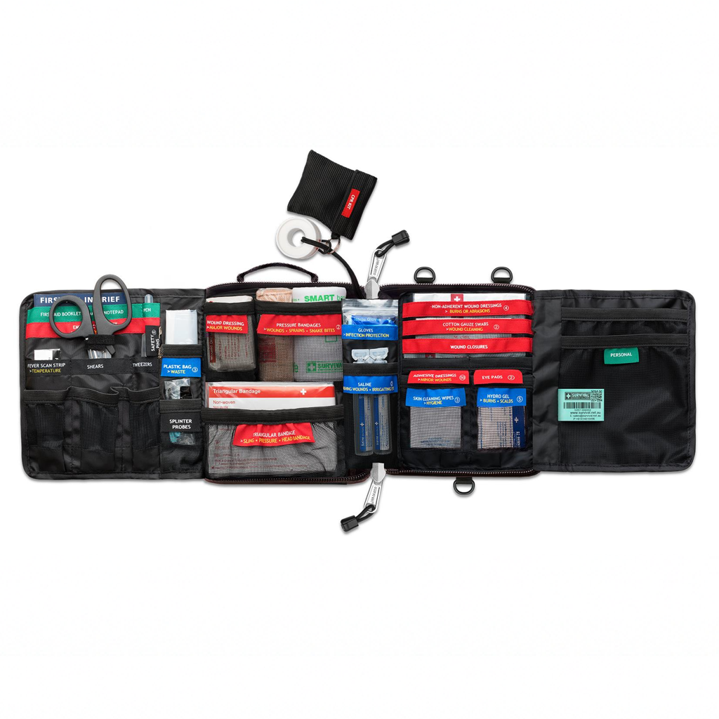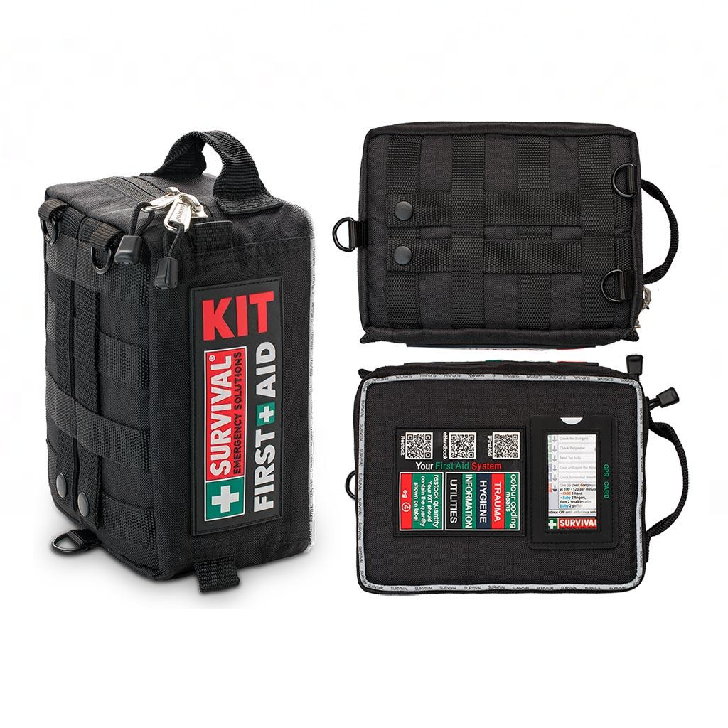 Apteczka SURVIVAL Vehicle First Aid KIT to profesjonalny zestaw pierwszej pomocy przeznaczony do samochodu, kampera lub przyczepy kempingowej, zaprojektowany z myślą o sytuacjach awaryjnych podczas podróży oraz codziennego użytkowania pojazdu. Kompaktowa forma umożliwia wygodne przechowywanie w ograniczonej przestrzeni bagażowej, przy jednoczesnym zachowaniu szerokiego zakresu wyposażenia niezbędnego do reagowania na urazy i nagłe zdarzenia.