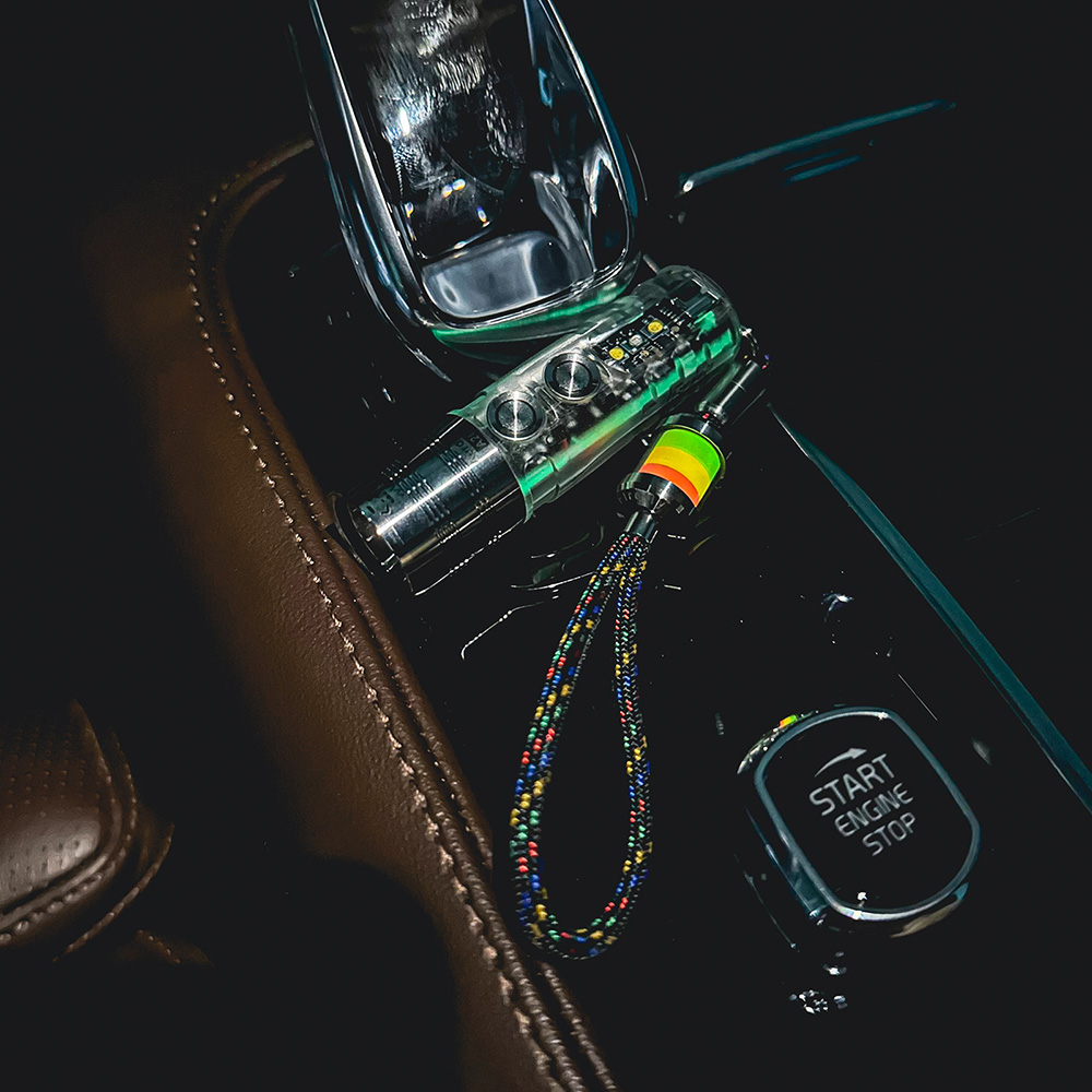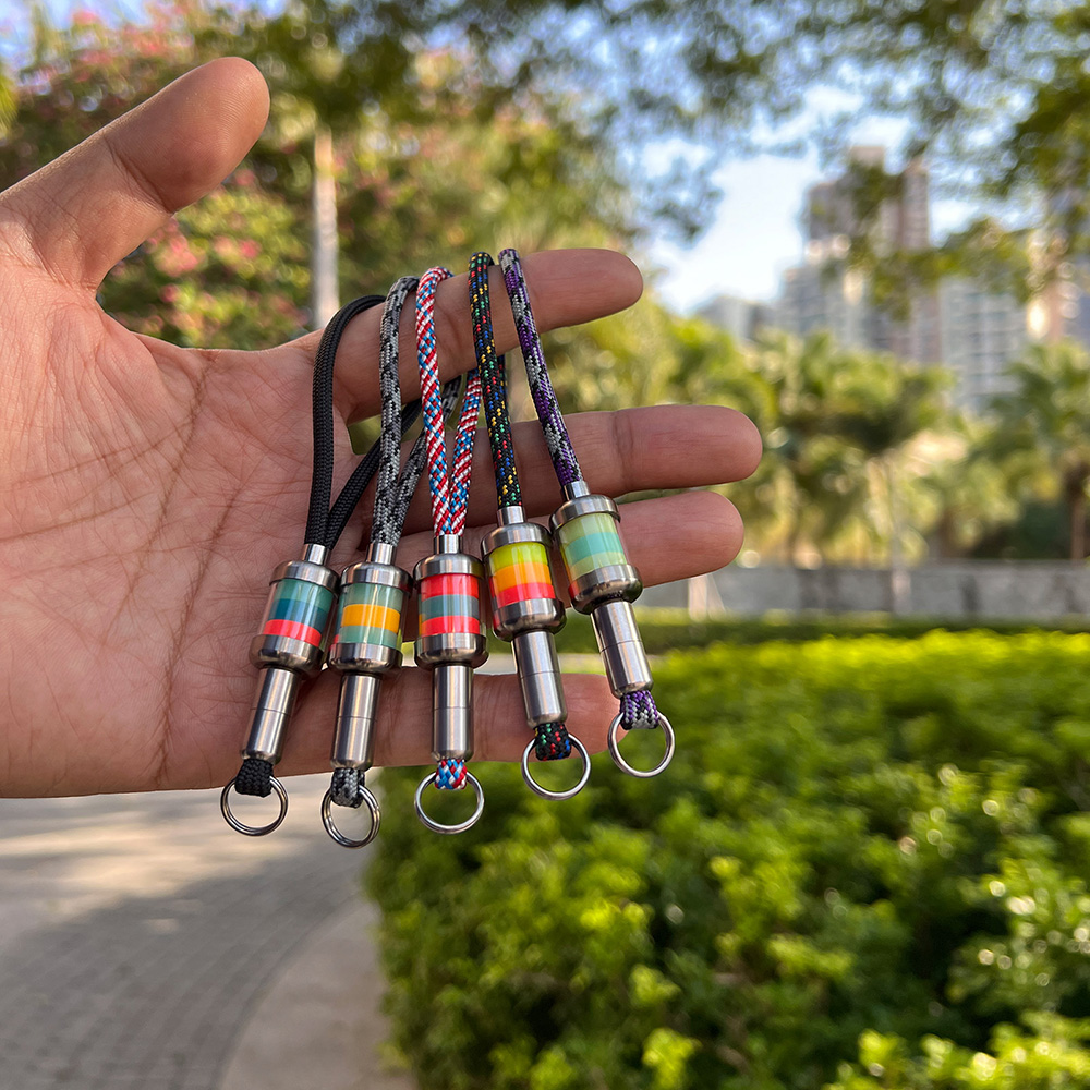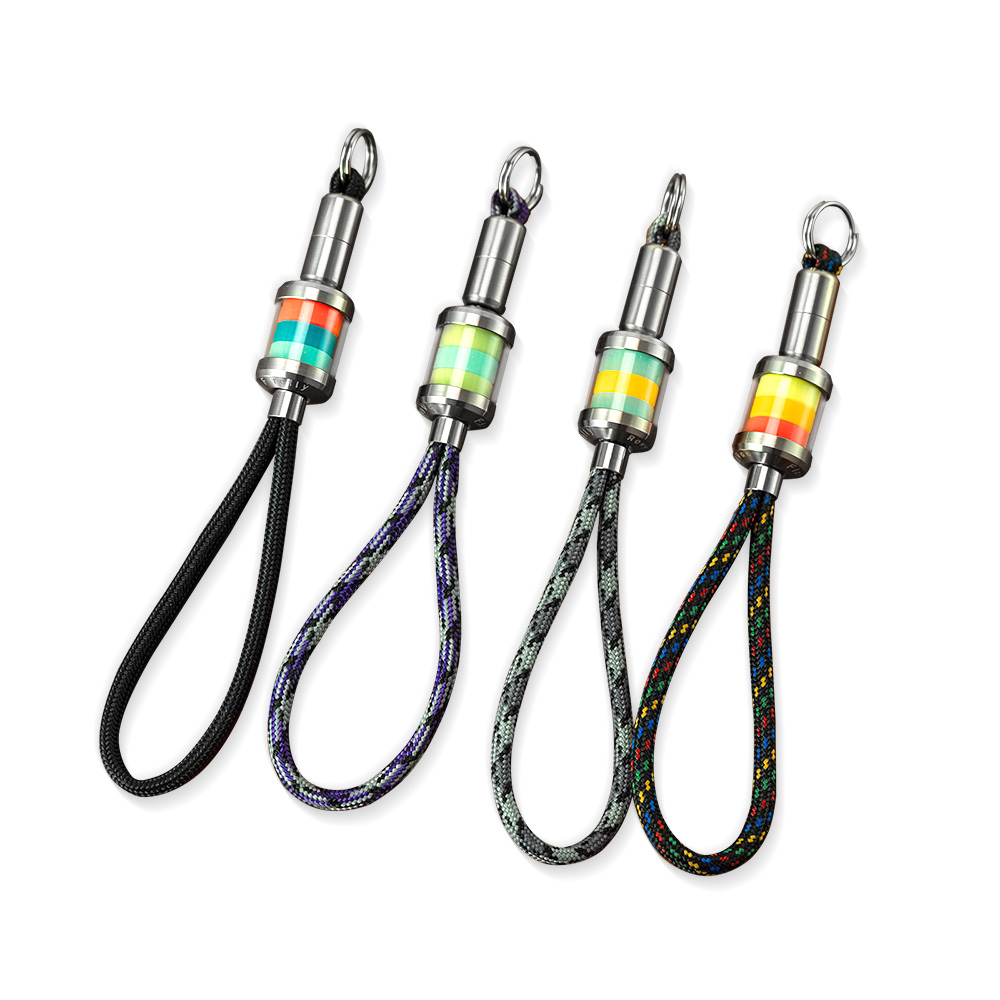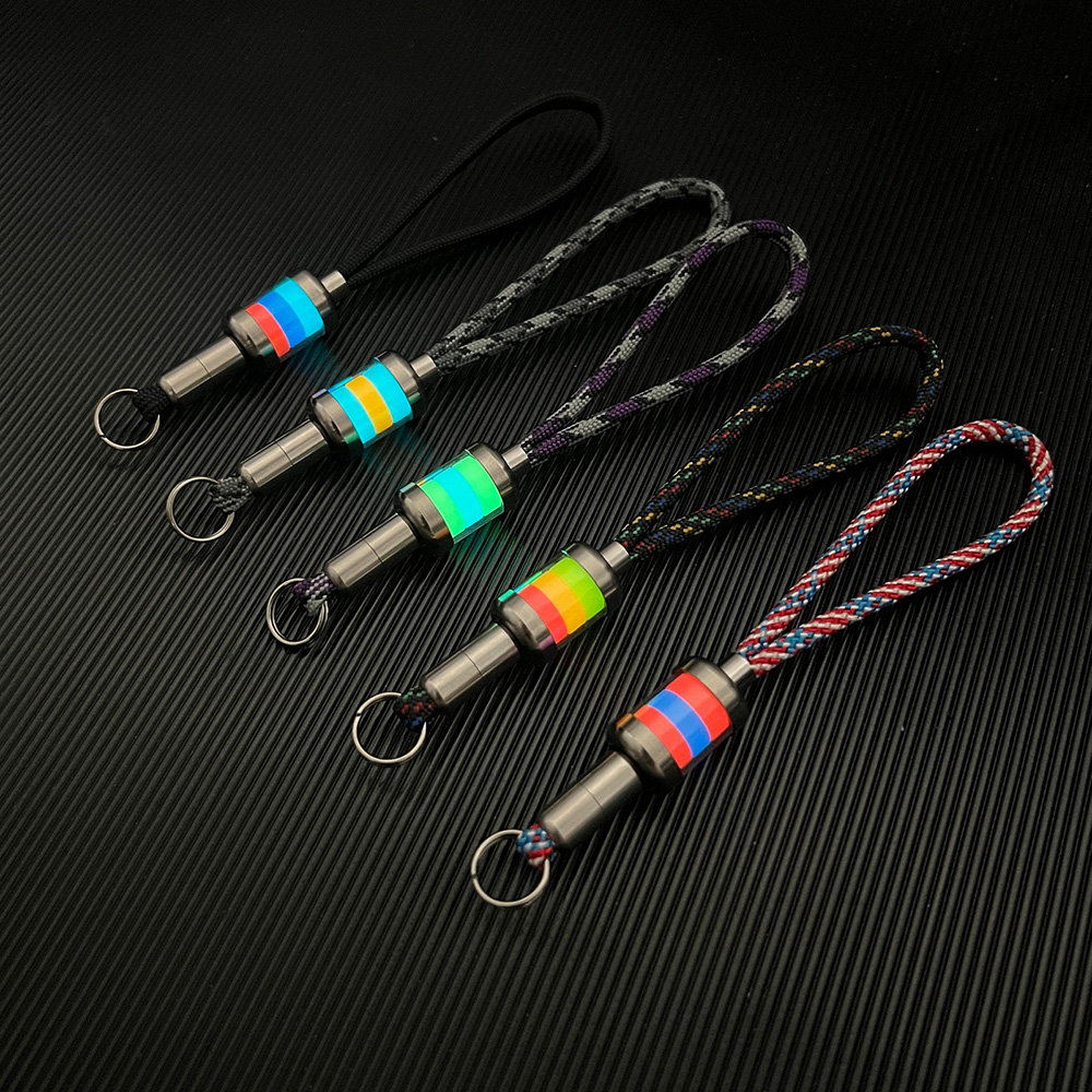 Brelok Tytanowy RovyVon Firefly Pro GITD Traffic Light to stylowy dodatek, który możemy podpiąć do wybranego przedmiotu za pomocą załączonego paracordu z kółkiem (do latarki, kluczy, elementu ubioru, uprzęży, torebki, plecaka itd.)