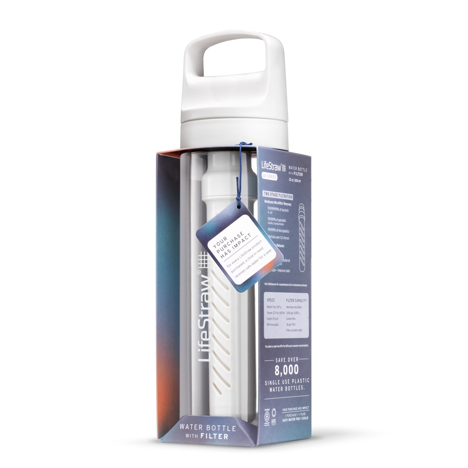Butelka Filtrująca LifeStraw Go 2.0 650 ml to codzienne i podróżne rozwiązanie zapewniający czystą wodę. Filtr membranowy butelki jest w stanie uzdatnić aż 4000 litrów wody, udostępniając ją do natychmiastowego spożycia. Usuwa z wody: bakterie, pasożyty, mikroplastik, muł, piasek oraz redukuje zmętnienie, zapewniając czystą i bezpieczną wodę pitną. Dodatkowy filtr z aktywnym węglem poprawia walory smakowe wody: redukuje chlor i chemiczne posmaki.