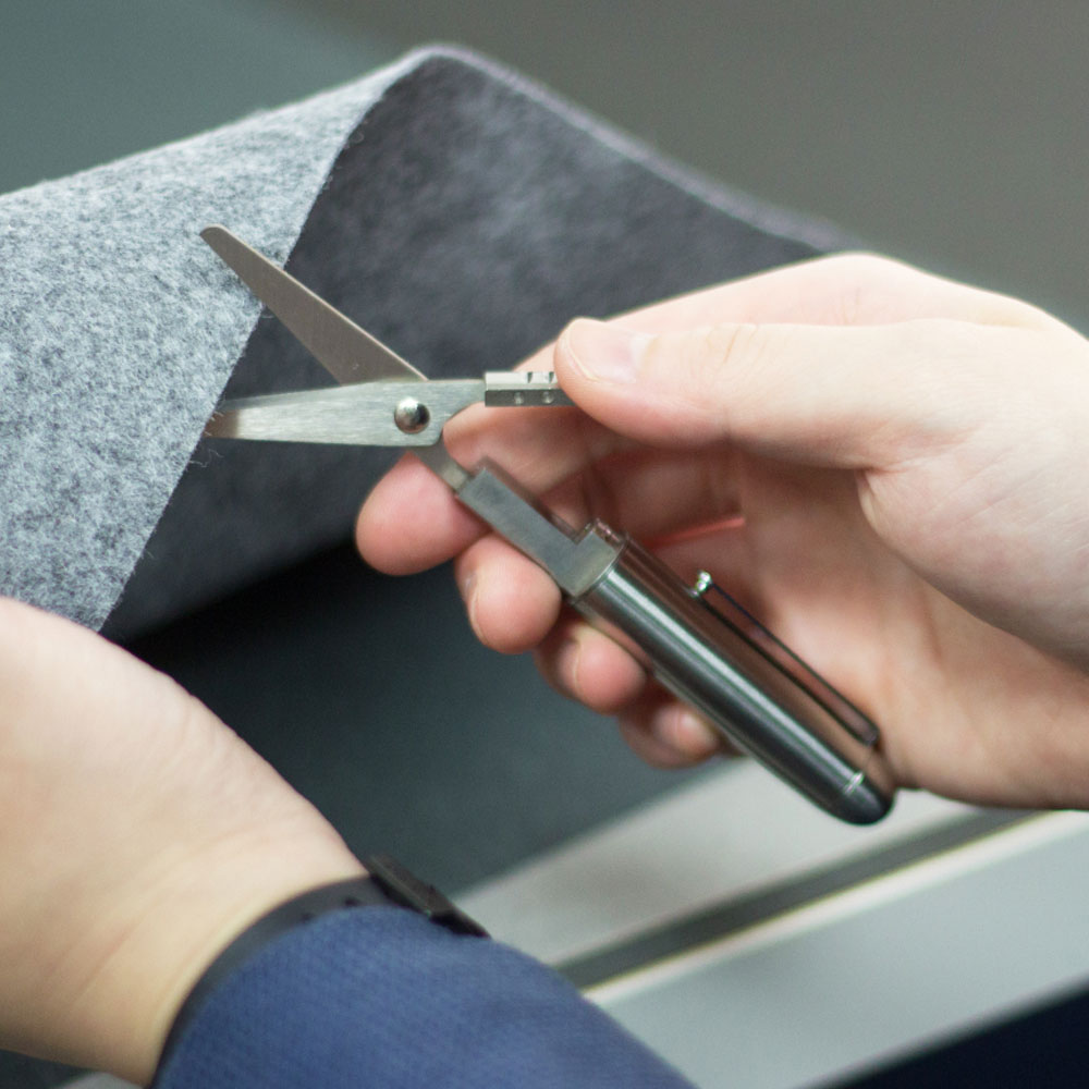 Długopis Xcissor Pen jest idealny do noszenia ze sobą zamiast zwykłego długopisu, gdy musisz przycinać małe rzeczy w podróży. Wystarczy zdjąć korpus, odbezpieczyć blokadę i wysunąć nożyczki do przodu. I gotowe. Może z łatwością przecinać wiele materiałów, takich jak papier, nici, tkaniny, skóry, wióry drewniane… i inne elementy. Ostrza są wykonane ze stali nierdzewnej SUS420 i pokryte niklem lub teflonem** dla zwiększenia trwałości.