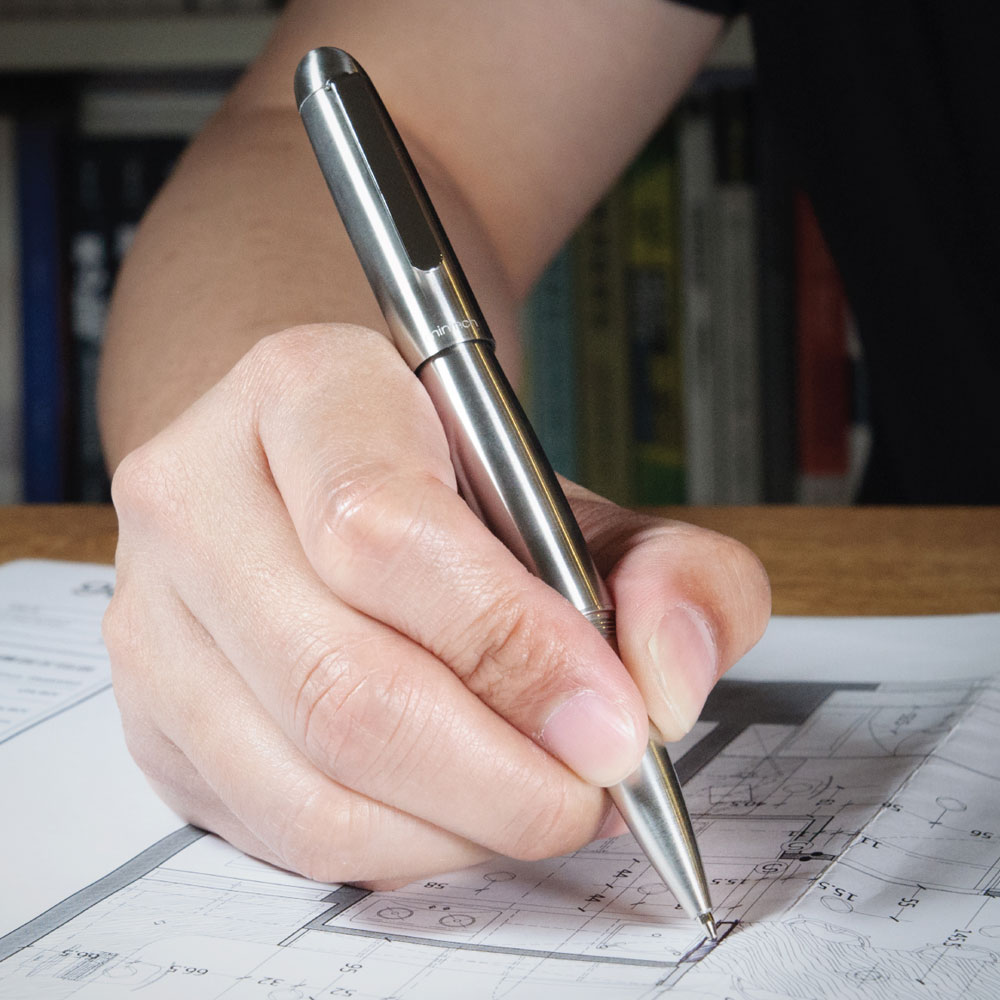 Długopis Mininch Xcissors Pen Standard Edition Silver z chowanymi nożyczkami to elegancki przyrząd piśmienniczy do domu, biura i w drogę. Luksusowy, masywny, solidne wykonany i świetnie układający się w dłoni. Z jednej strony wyposażony w zakręcaną skuwkę z klipsem skrywającą wymienialny wkład D1*, który można dokupić gdziekolwiek. Z drugiej strony po ściągnięciu zatyczki znajdziemy nożyczki ze sprężyną wspomagającą proces cięcia, znacznie rozszerzające spektrum zastosowań całości. Wykonany z wysokiej jakości stali nierdzewnej SUS304, idealnie wyważony, przez producenta określany jest jako „elegancki długopis dla kadry kierowniczej na całe życie”. Nie dajmy jednak zaszufladkować tego przyrządu! Długopis bowiem będzie świetnym codziennym akcesorium dla każdego z Nas!