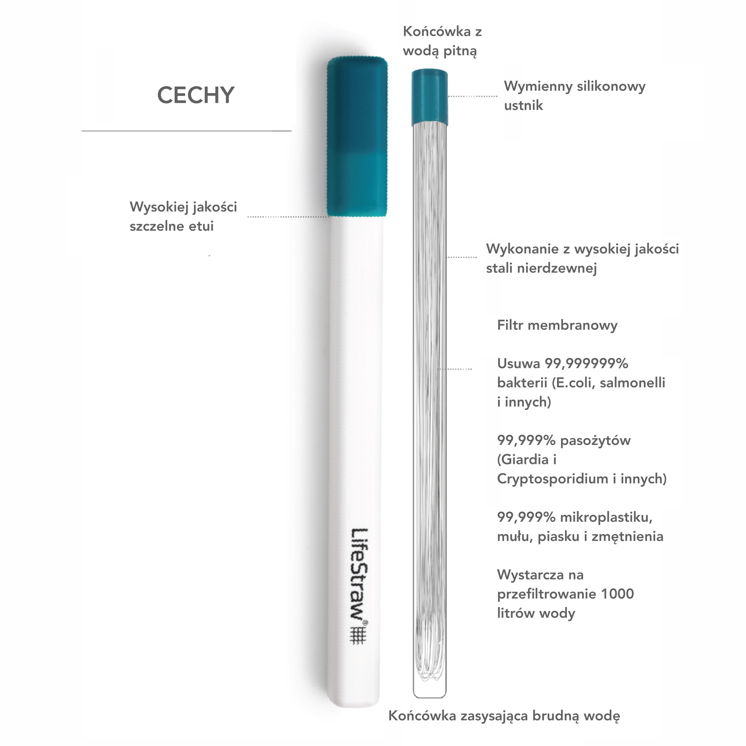 **UNIWERSALNY**: Świetny podczas wędrówek, biwakowania, podróży czy w sytuacjach awaryjnych. Pozwala na picie wody bezpośrednio z jeziora, rzeki czy strumyka.
