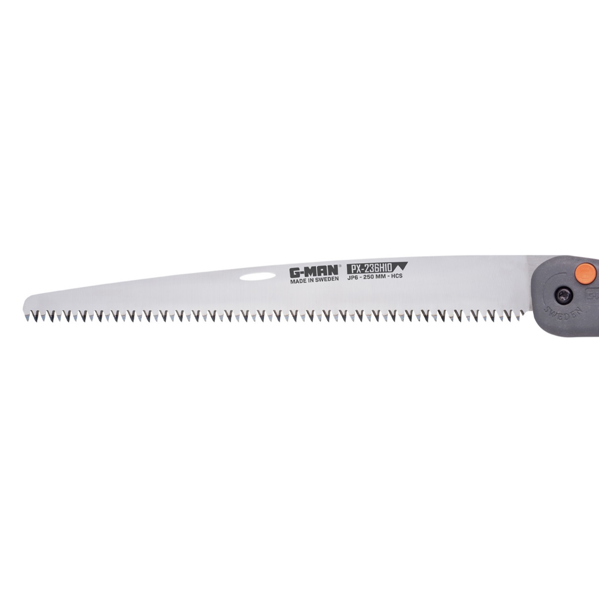 G-MAN Piła Terenowa Składana 540/250mm/6 TPI to piła ręczna zaprojektowana do intensywnego użytkowania w warunkach terenowych, bushcraftowych oraz ogrodowych, łącząca szwedzką stal narzędziową, agresywną geometrię zęba oraz mobilną konstrukcję umożliwiającą bezpieczny transport i efektywną pracę w zmiennych warunkach.