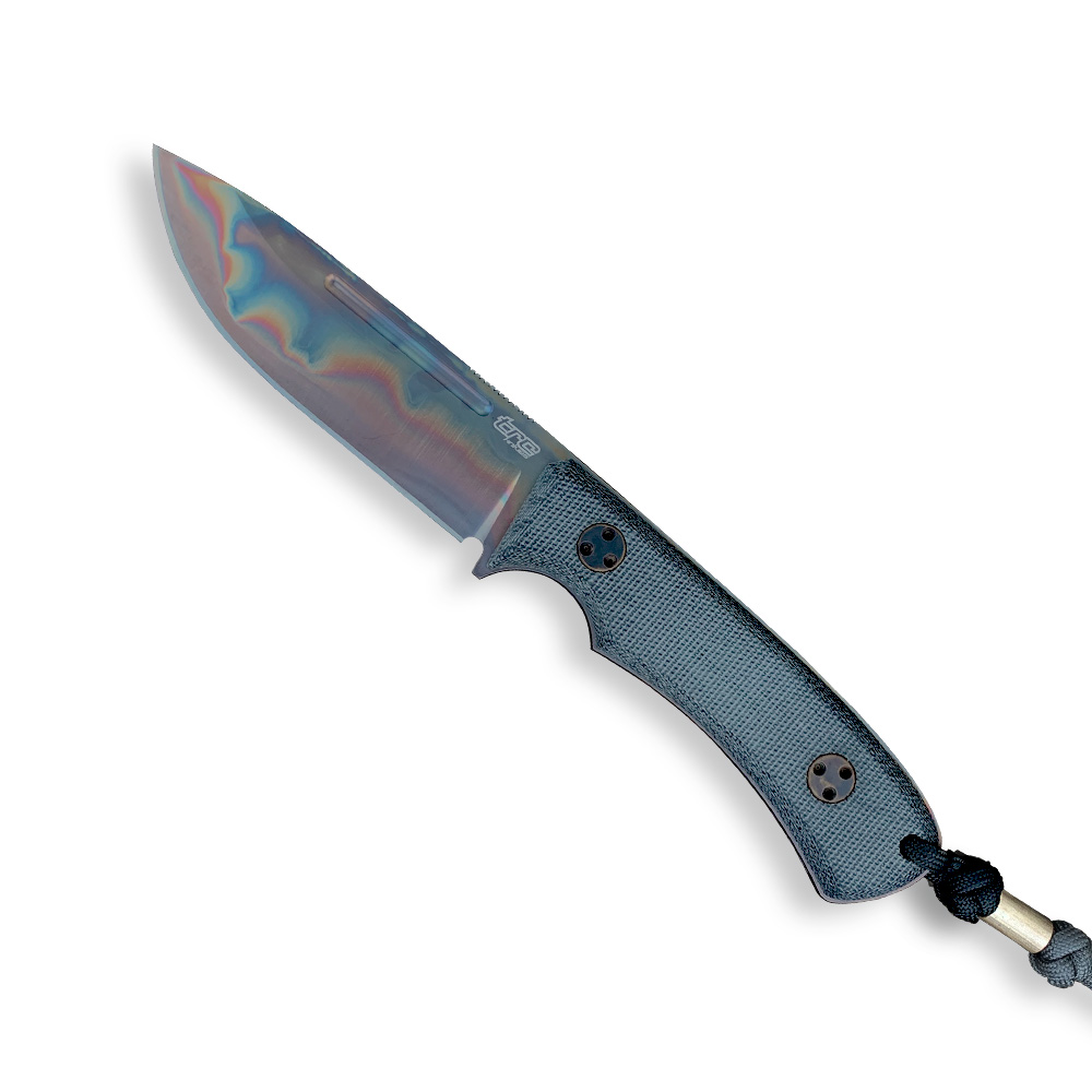 Ostrze o grzbiecie grubości 3,5 mm wykonane w stylu drop point sprawdzi się we wszelkiego rodzaju zastosowaniach survivalowych i na kempingu. Zarówno batonowanie drewna jak i przygotowywanie posiłku nie będzie stanowiło dla niego kłopotu. Pomoże w tym dodatkowo jego wykończenie szlifem płaskim, który zapewni płynne cięcie i wykonywanie różnorodnych zadań. Na głowni znajdziemy karbowanie (jimping), które stanowi podporę na kciuk podczas cięć wymagających użycia większej siły (nacięcia zostały wykonane na tyle delikatnie, że nie drażnią palca podczas docisku, ale na tyle drobno, że całość może pełnić rolę mini-tarki). Nóż posiada wyprofilowany jelec, który wraz z podcięciem na palec w rękojeści zabezpiecza przed zsunięciem się dłoni na krawędź tnącą podczas pracy. Zaokrąglony grzbiet wystający z rękojeści poprawia komfort i pewność chwytu.