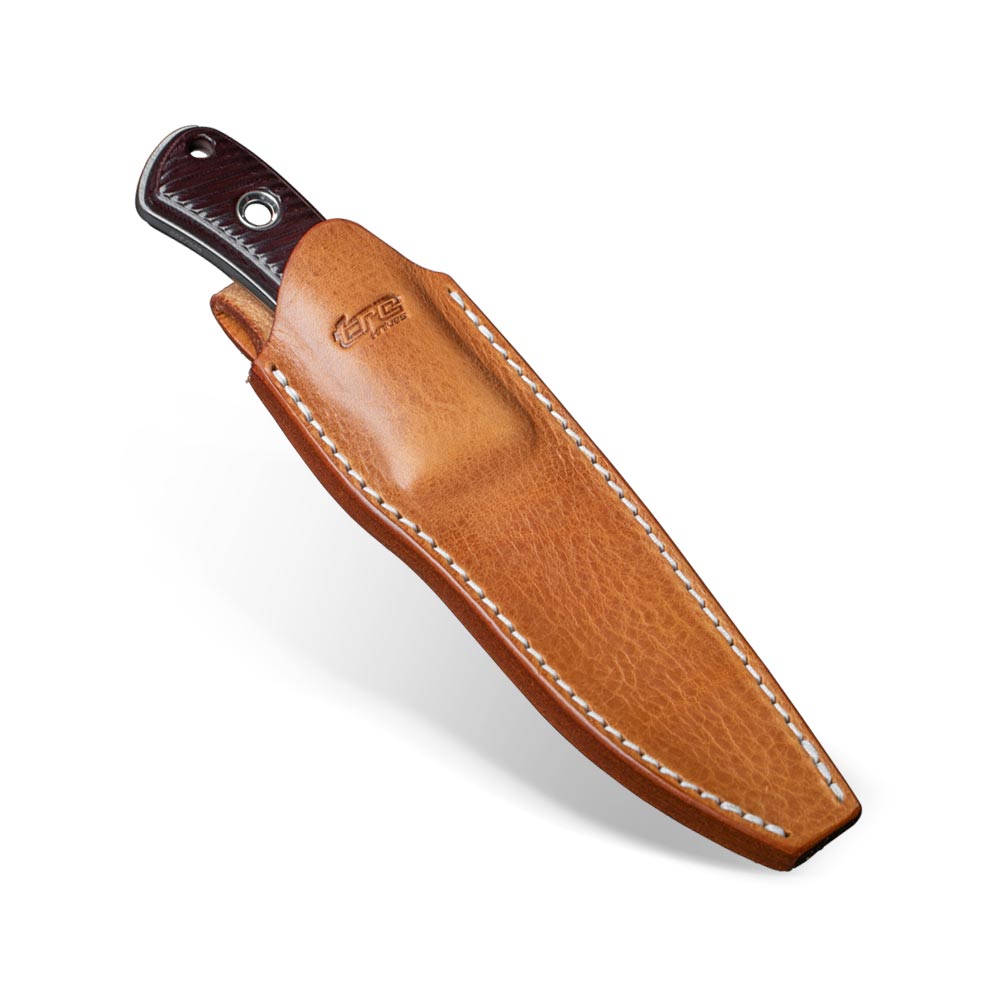 Nóż South Pole 10th Anniversary Edition w podstawowym zestawie startowym wyposażony został w skórzaną pochwę w kolorze złoto-brązowym.