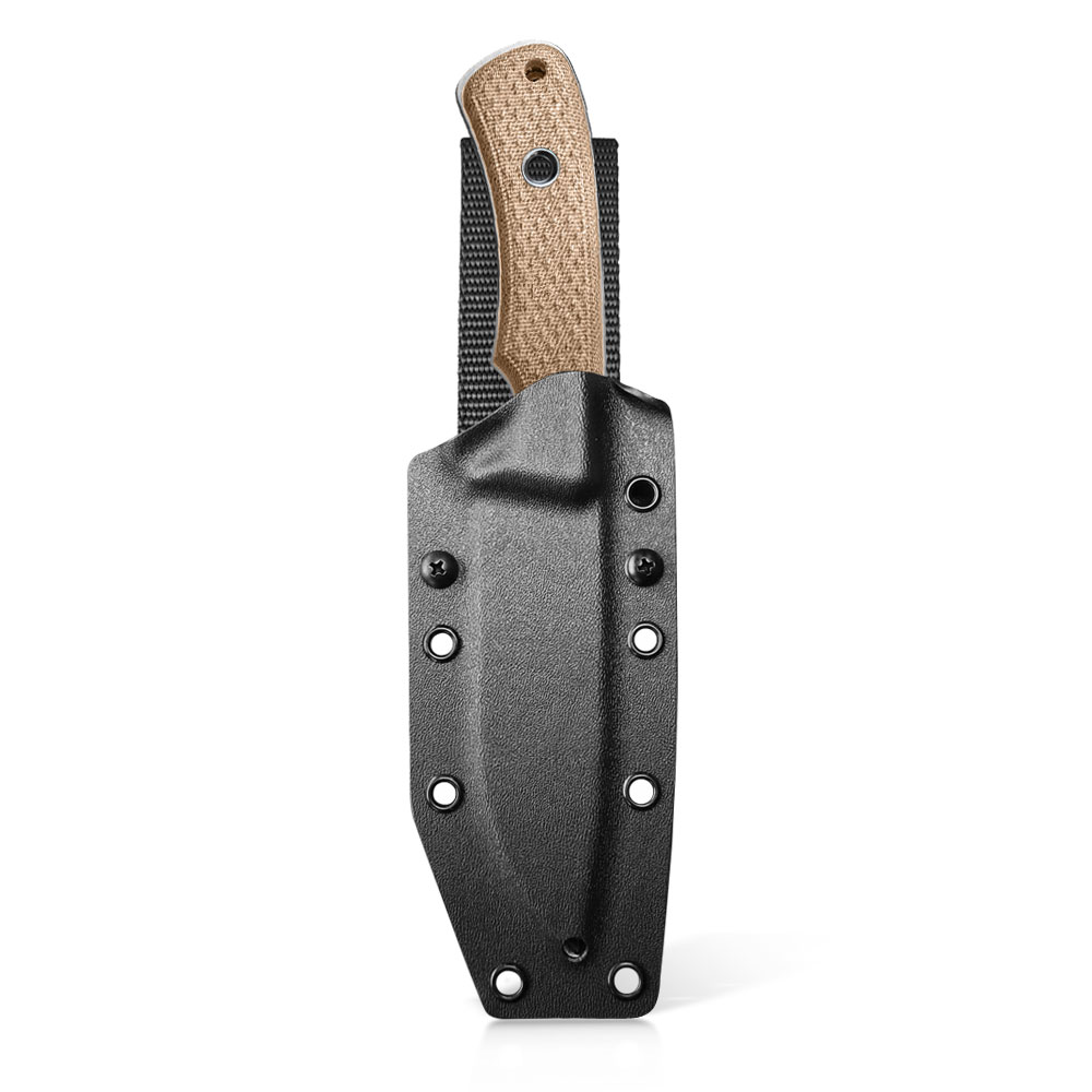 Nóż South Pole w podstawowym zestawie startowym wyposażony został w kaburę kydex w kolorze czarnym.