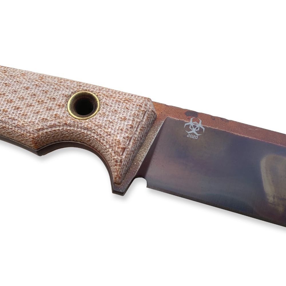 - Uwaga! Prezentowana wersja, produkowana od lipca 2021 roku to wariant ze stalowymi tubami mocującymi okładziny z micarty do rękojeści noża.