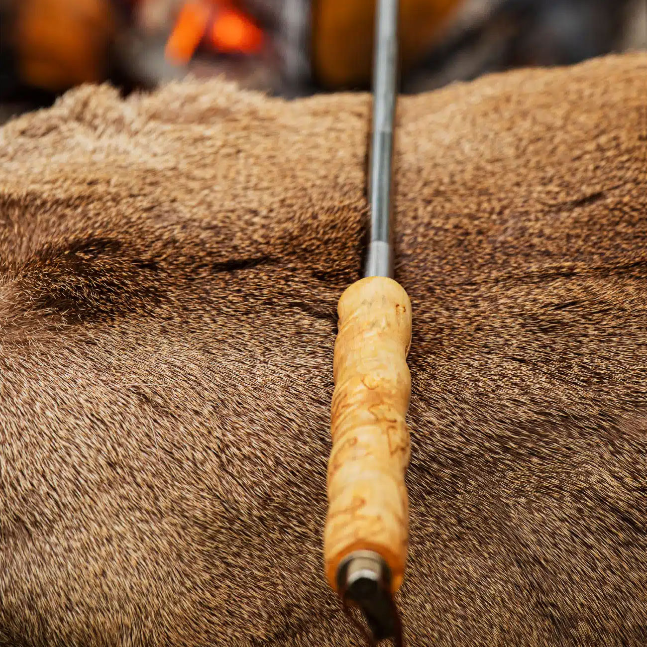 Kij Widełki Arctic Legend Teleskopowy Do Grilla Małego Ogniska Brzoza Karelska to uzupełniający asortyment fińskiego producenta sprytny przyrząd wspomagający przygotowanie pożywienia na świeżym powietrzu. Pięknie wykonane narzędzie pomocne przy przytrzymaniu filetowanej ryby lub obracaniu mięsa na grillu, bądź też grillowaniu pianek czy kiełbaski.