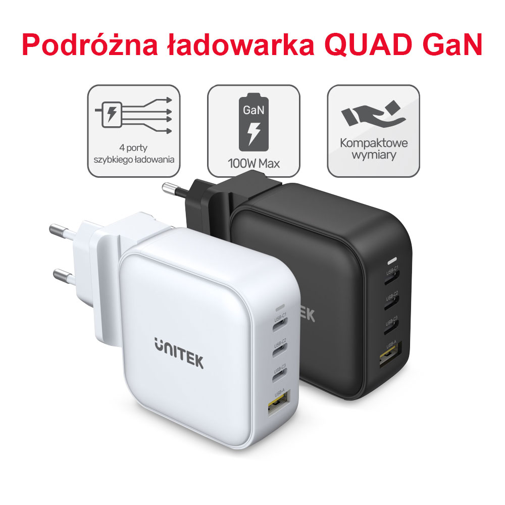 Ładowarka Unitek GaN 4 porty PD 100W QC 3.0 Biała
