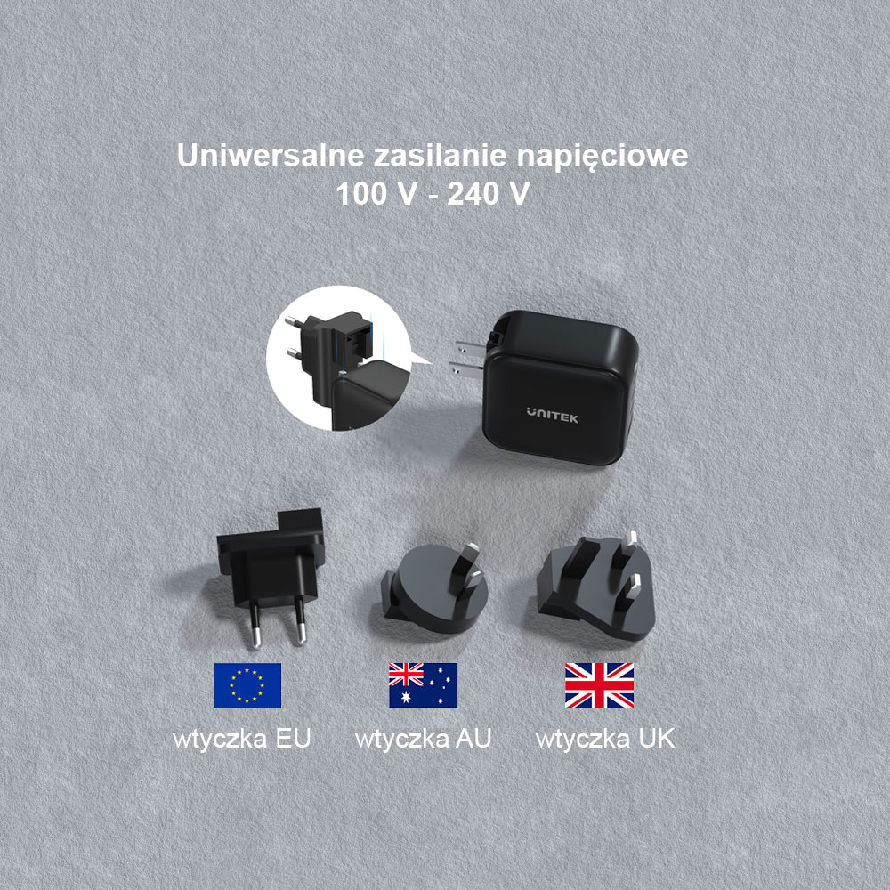 Ładowarka podróżna Unitek jest oczywiście wyposażona w zabezpieczenia przed przegrzaniem, zwarciem, przepięciem i przetężeniem. Jest też dopasowana do pracy z napięciem od 100 V (Ameryka) do 240 V (Europa), więc w podróży nie musisz się martwić o bezpieczeństwo.