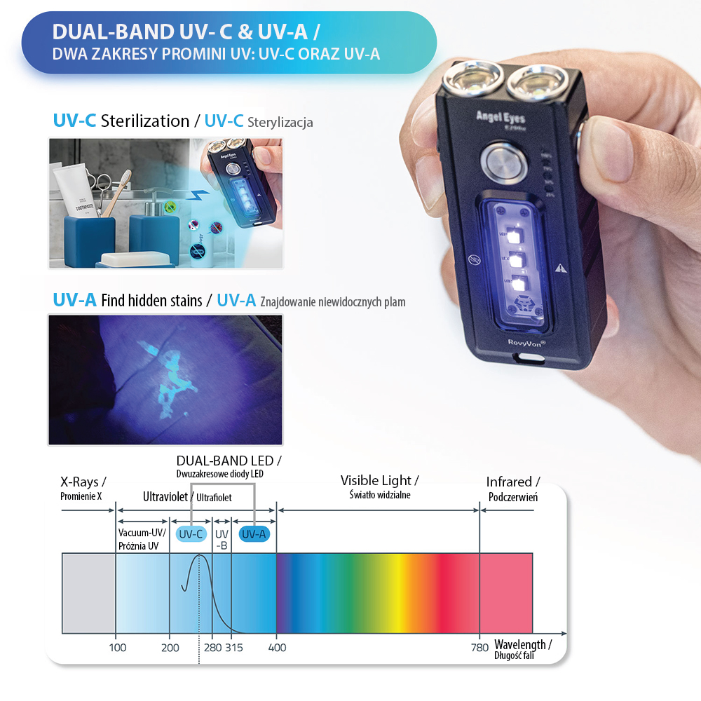 - LINIA: UV-C Flashlights (latarki emitujące promienie UV )