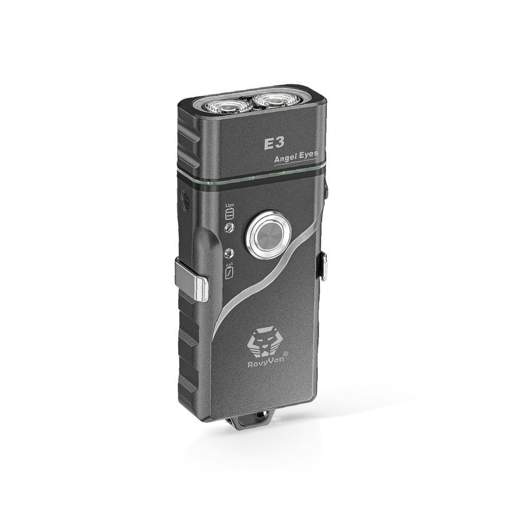 Prezentowana latarka LED RovyVon Angel Eyes E3 Gunmetal posiada dwie diody dające maksymalne oświetlenie o mocy aż 700 lumenów oraz korpus z aluminium 6063 w kolorze gunmetal. Wbudowany akumulator litowo-polimerowy zapewnia maksymalnie 54 godziny czasu pracy.
