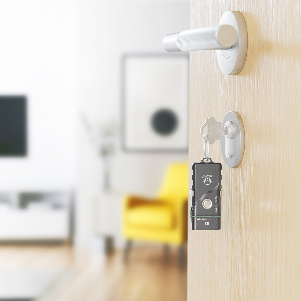 Latarka LED RovyVon Angel Eyes E3 Gunmetal Hybrydowa Akumulator i Bateria AAA 700 Lumenów to małe użyteczne źródło światła w formie breloka do kluczy.
