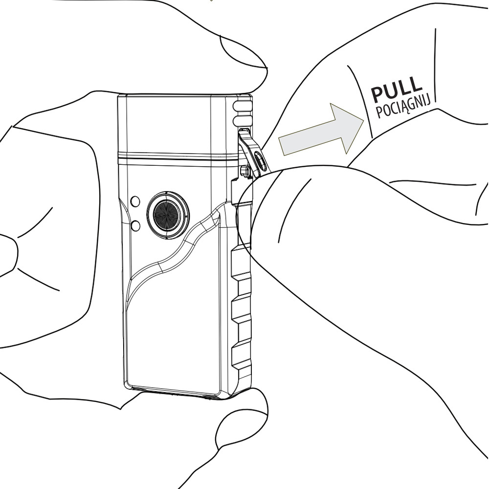 Latarka została zaprojektowana w formie breloka do kluczy, w związku z czym na jej końcu znajdziemy odpowiedni uchwyt, do którego podpinamy jedno ze stalowych kółek na klucze znajdujących się w zestawie. Opcjonalnie uchwyt można wykorzystać na podpięcie smyczy, sznurka, łańcuszka czy paracordu, co powiększa wachlarz sposobów przenoszenia latarki.