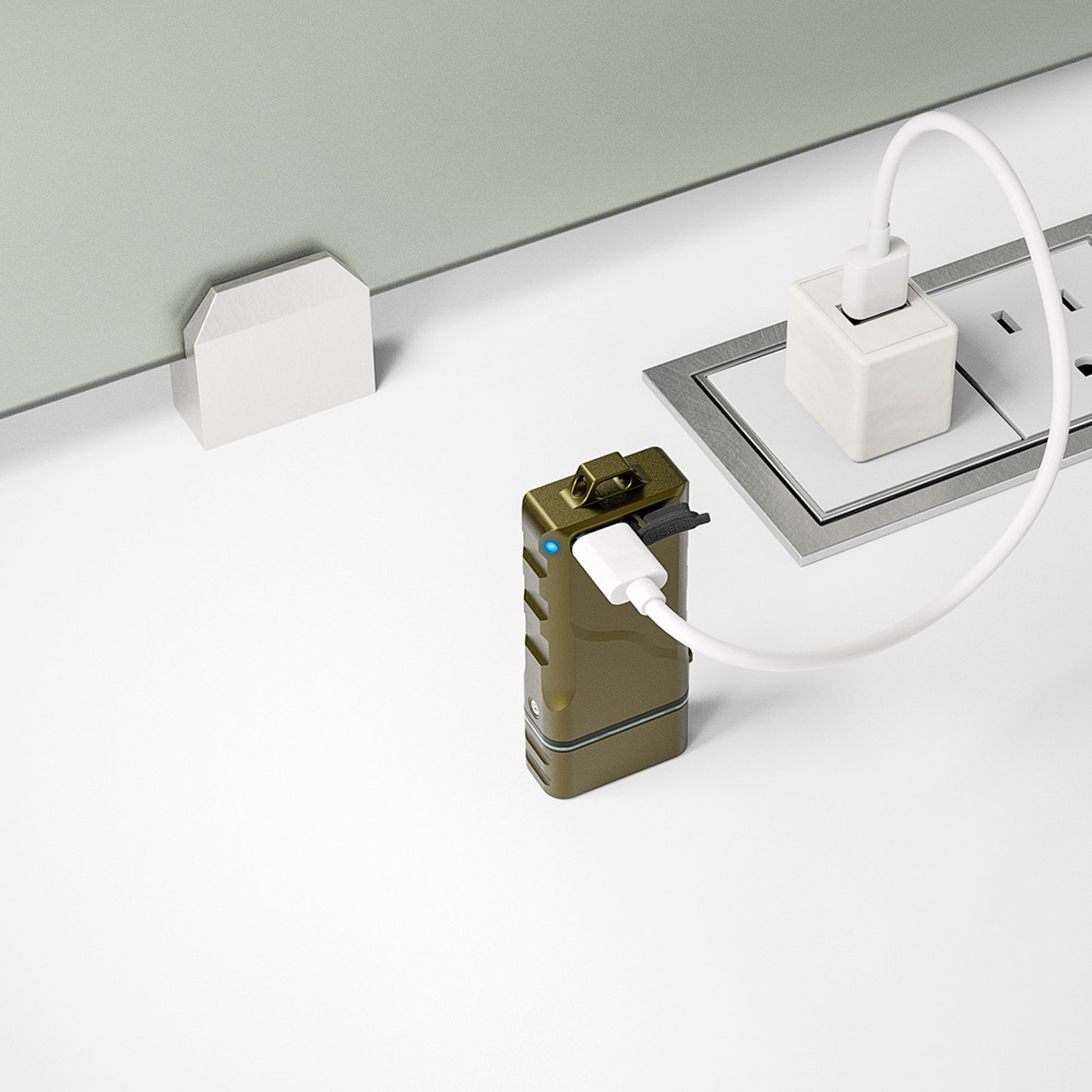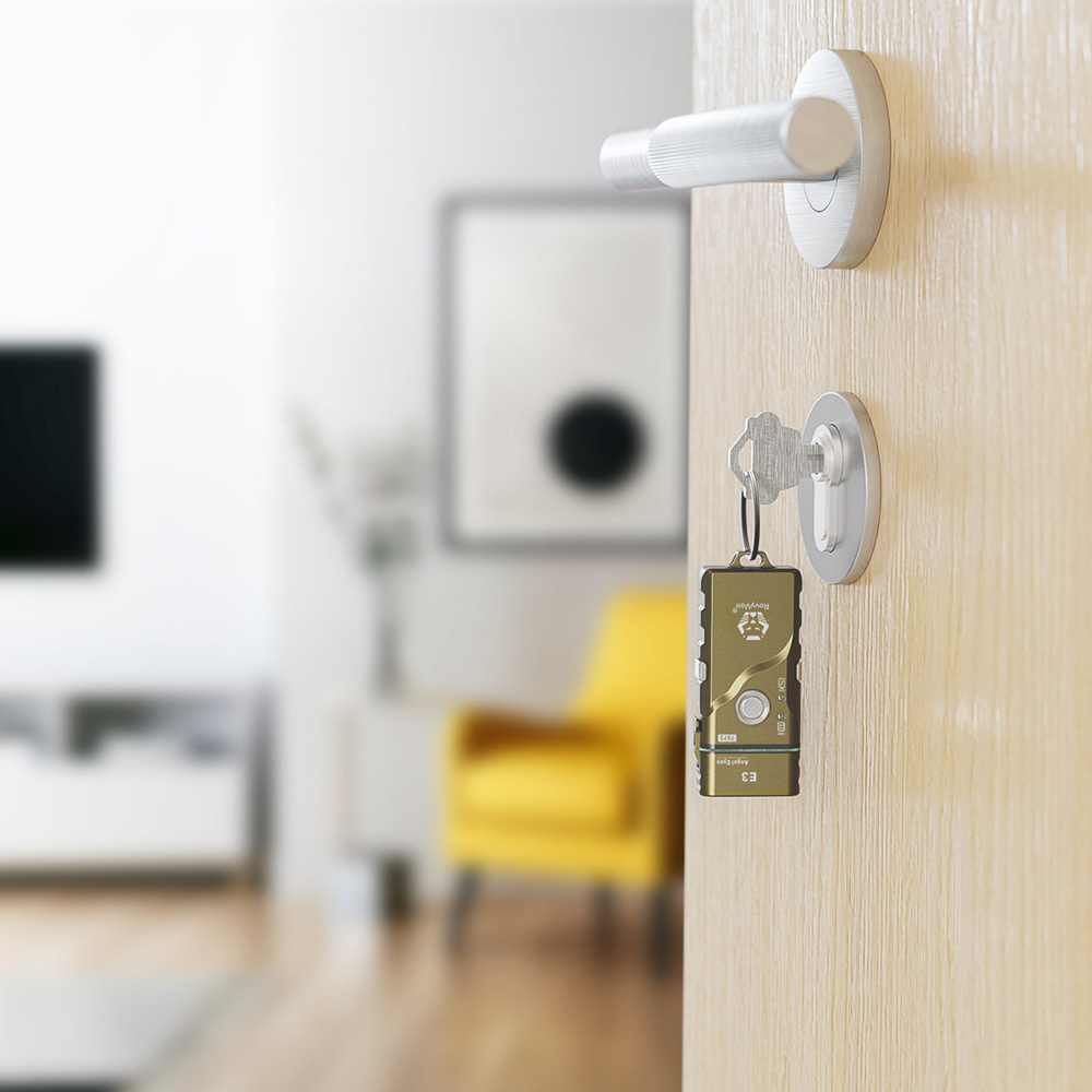Latarka została zaprojektowana w formie breloka do kluczy, w związku z czym na jej końcu znajdziemy odpowiedni uchwyt, do którego podpinamy jedno ze stalowych kółek na klucze znajdujących się w zestawie. Opcjonalnie uchwyt można wykorzystać na podpięcie smyczy, sznurka, łańcuszka czy paracordu, co powiększa wachlarz sposobów przenoszenia latarki.