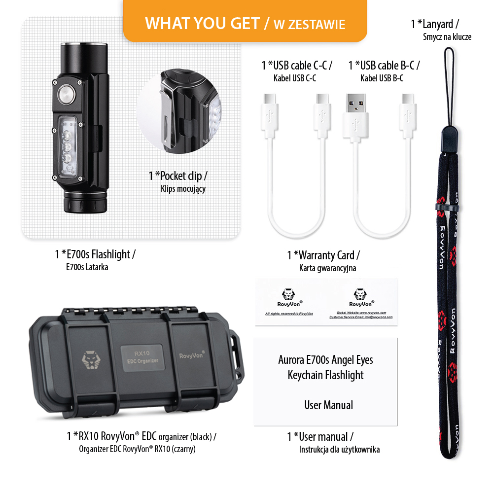 Angel Eyes E700 to linia produktów RovyVon z kategorii wielofunkcyjnych latarek o wysokiej mocy świetlnej. Maksymalna moc jaką można uzyskać włączając oświetlenie frontowe to aż 2800 lumenów.