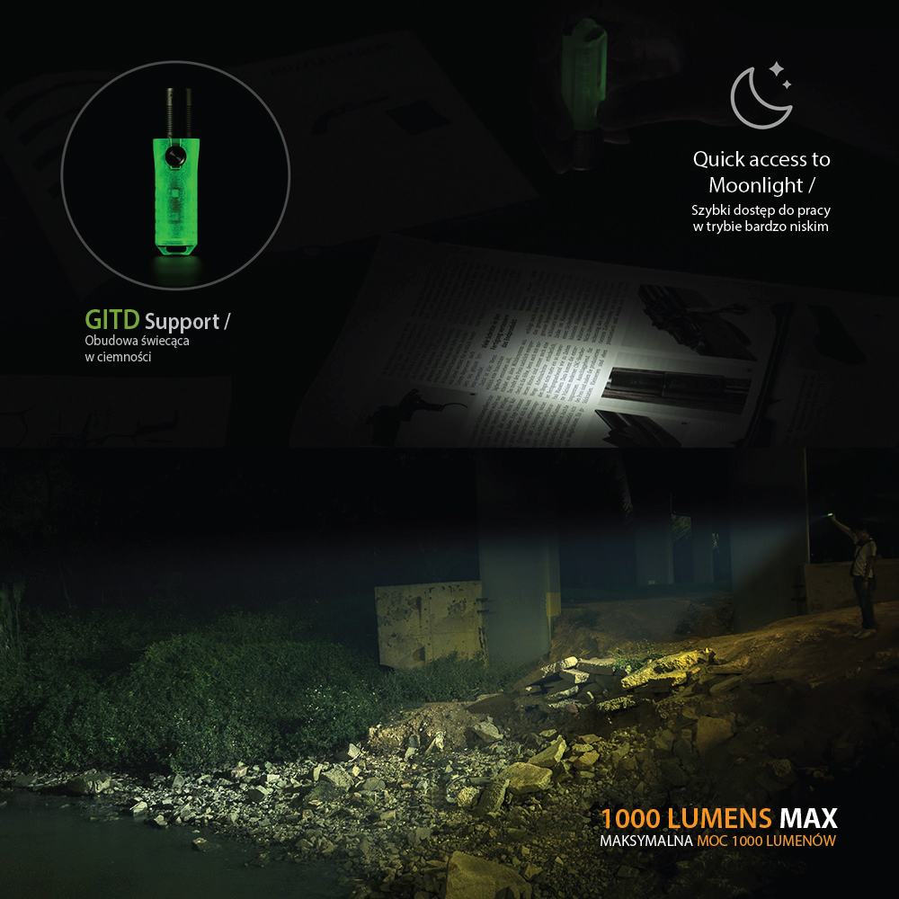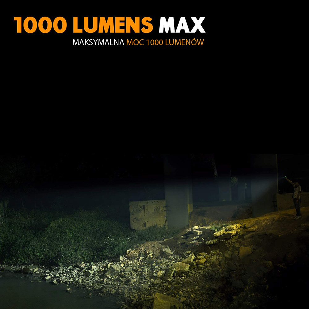 MAKSYMALNA MOC: 1000 lumenówAKUMULATOR: Litowo-polimerowy