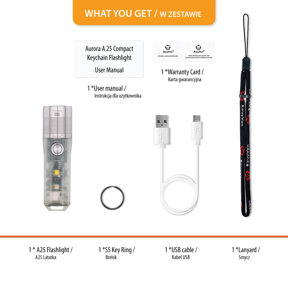 Aurora A25 to latarka z linii Aurora EDC Series. Linia ta, jak sugeruje anglojęzyczna nazwa opisuje serię latarek RovyVon® przeznaczonych do codziennego użytku. Są to latarki o pełnowymiarowych kształtach i pełnowymiarowej mocy świetnej.
