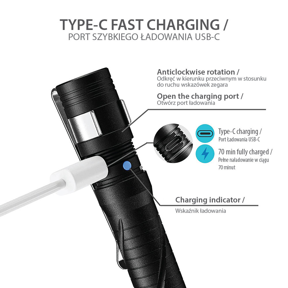 ŁADOWANIE: Przez USB-CDŁUGOŚĆ: 127 mm