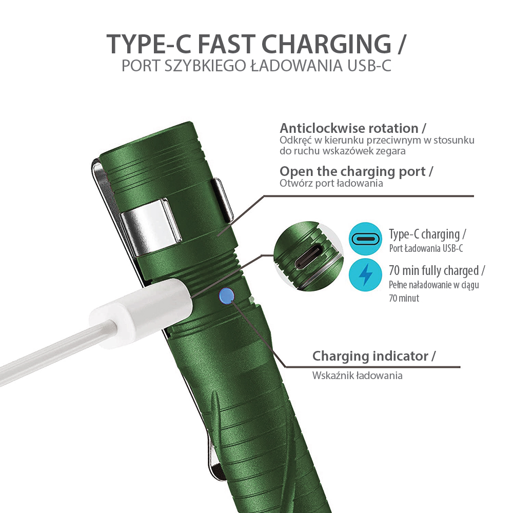 ŁADOWANIE: Przez USB-CDŁUGOŚĆ: 127 mm