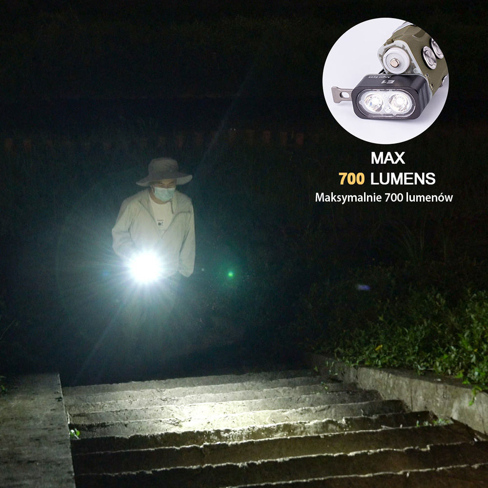 Prezentowana latarka Angel Eyes E1 wykonana została z wytrzymałego poliamidu i aluminium, a jej maksymalna moc świetlna to aż 700 lumenów. Latarkę ładuje się przez złącze USB-C. Poza akumulatorem o pojemności 300 mAh, latarka zasilana jest też baterią AAA co pozwala uniezależnić się od ładowarki w warunkach polowych. (łączny czas pracy na obu to 108 h w Trybie Moonlight).