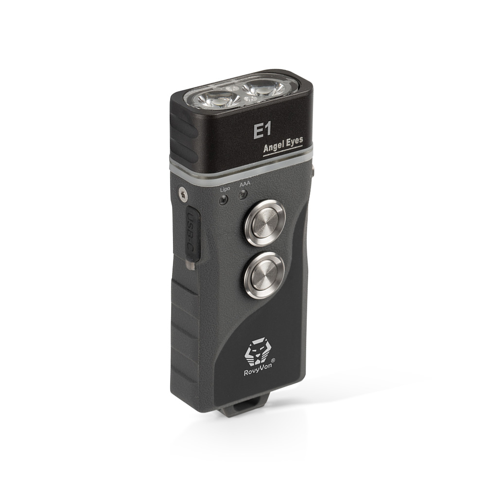 Angel Eyes E1 to latarka z linii kompaktowych, poręcznych latarek codziennego użytku (EDC – EveryDay Carry) z hybrydowym zasilaniem. Posiada dwie diody czołowe.