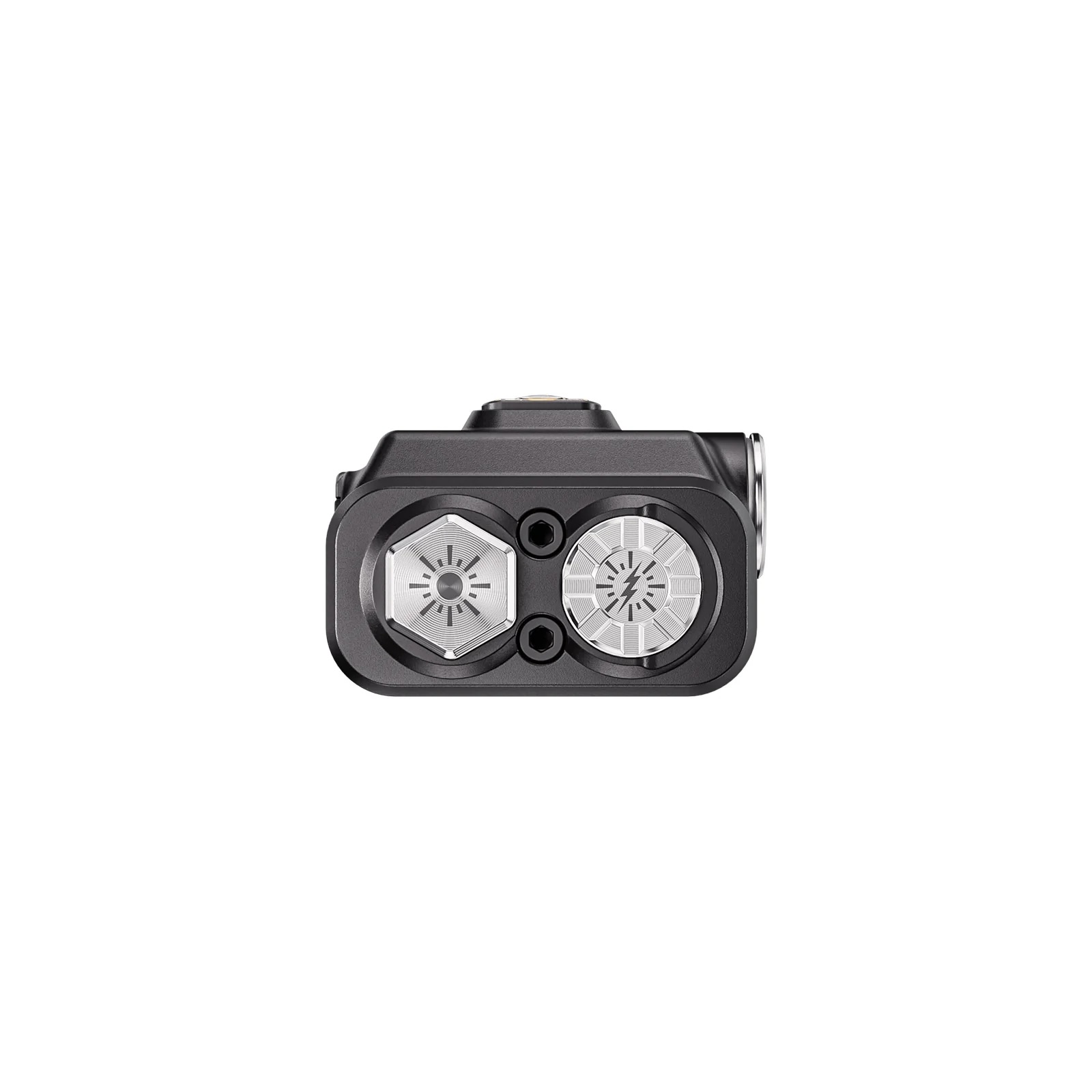 Dwa przyciski tylne dla łatwej obsługi. Jeden z przycisków uruchamia funkcje codzienne (tryby światła stałego) a drugi tryby taktyczne.