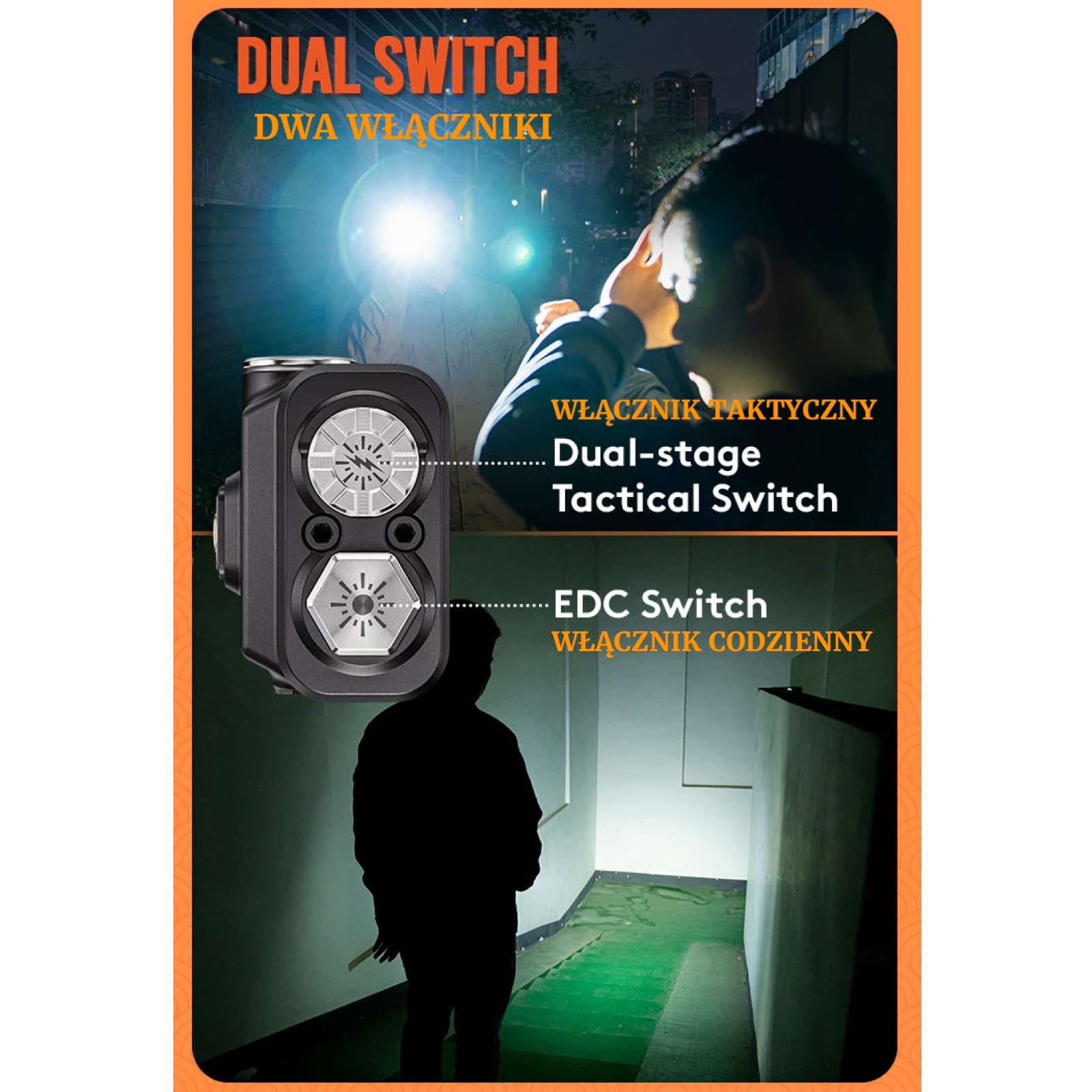 • 2) 'Przycisk Taktyczny’ – Dual-Stage Tactical Switch – przycisk z symbolem błyskawicy.