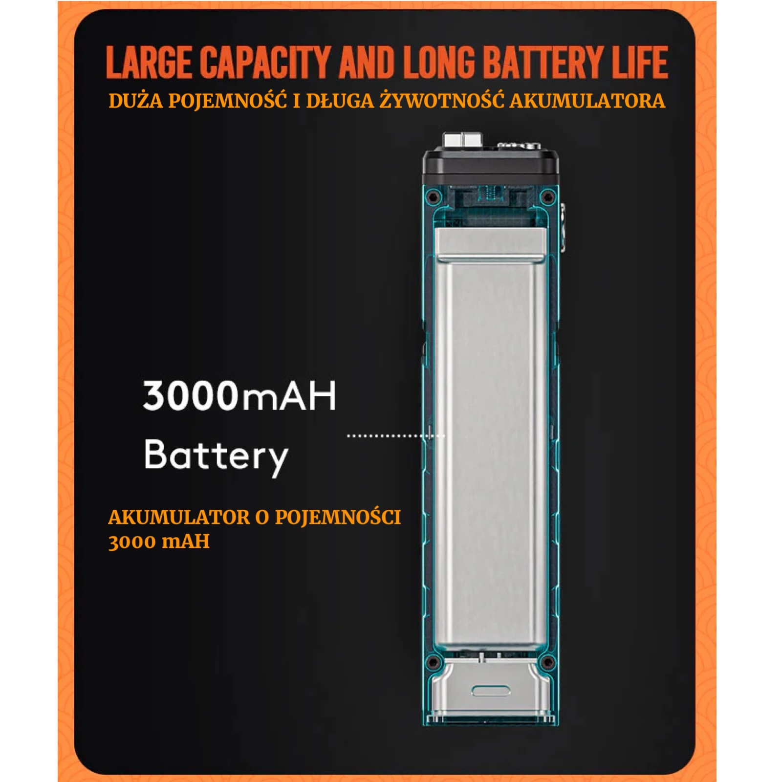 • Zasilanie: wbudowany akumulator litowo-polimerowy 3000 mAh