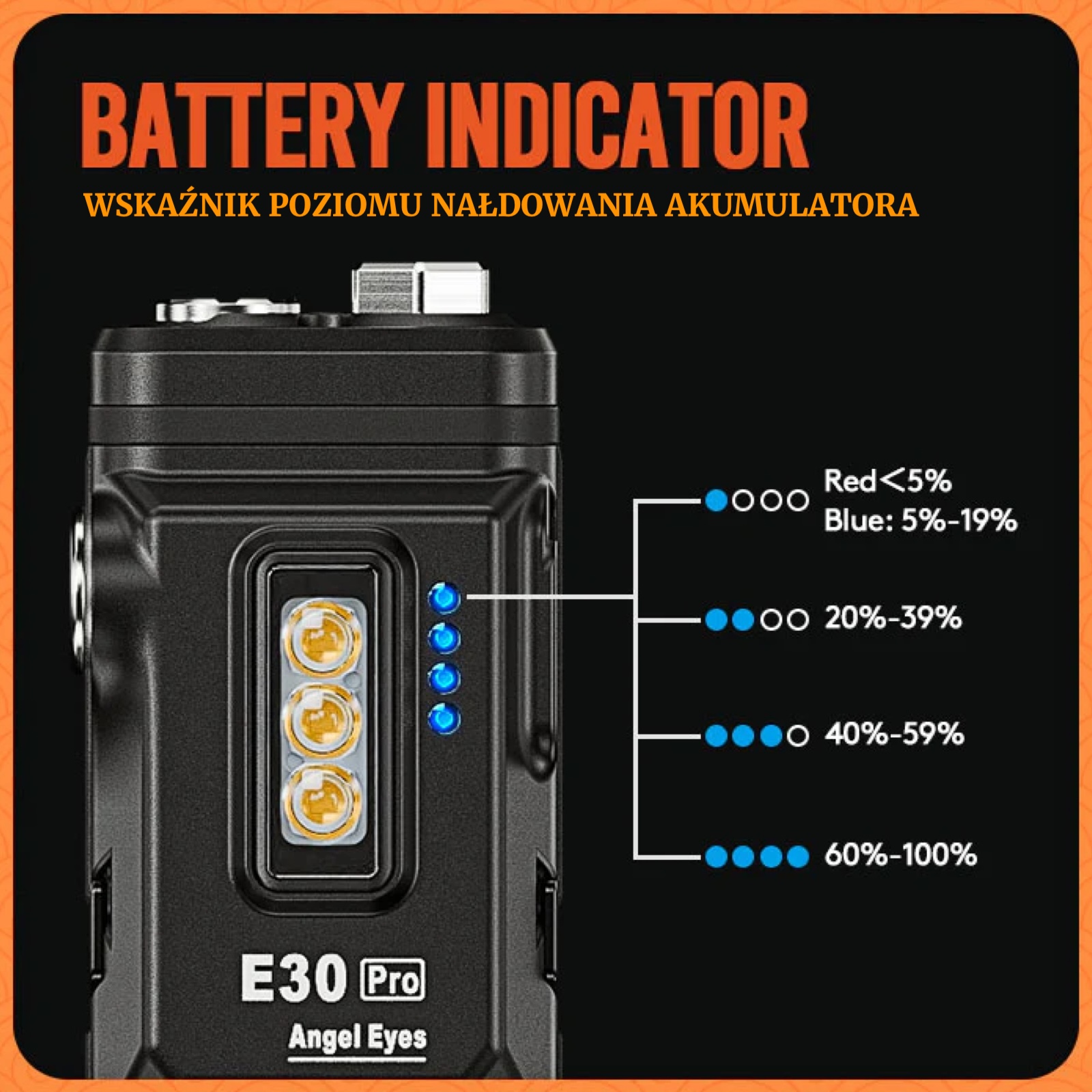 • Nazwa: RovyVon Angel Eyes E30 Pro 3500 Lumens Flat EDC Flashlight