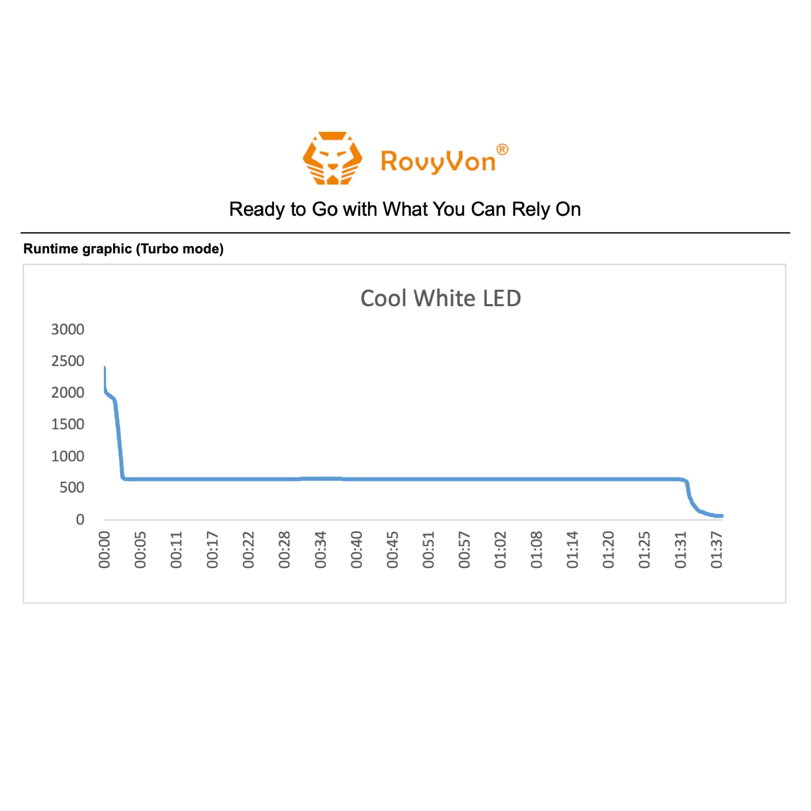 - Tryb Turbo: dający maksymalną moc 2400* lumenów.