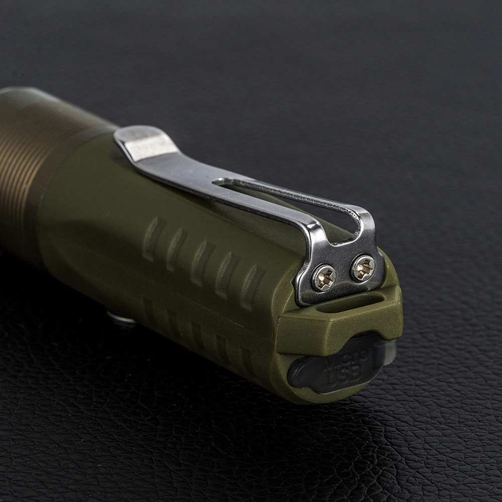 Klips stalowy. Montowany na latarce klips służy do jej przypięcia do elementu odzieży (kieszeni spodni, koszuli, rękawa), saszetki, torby, plecaka, itd. Umożliwia też przypięcie do czapki z daszkiem dając nam funkcję latarki czołowej. Klips można przekładać na korpusie, dzięki czemu mamy możliwość skierowania strumienia świetlnego w pożądanym kierunku.
