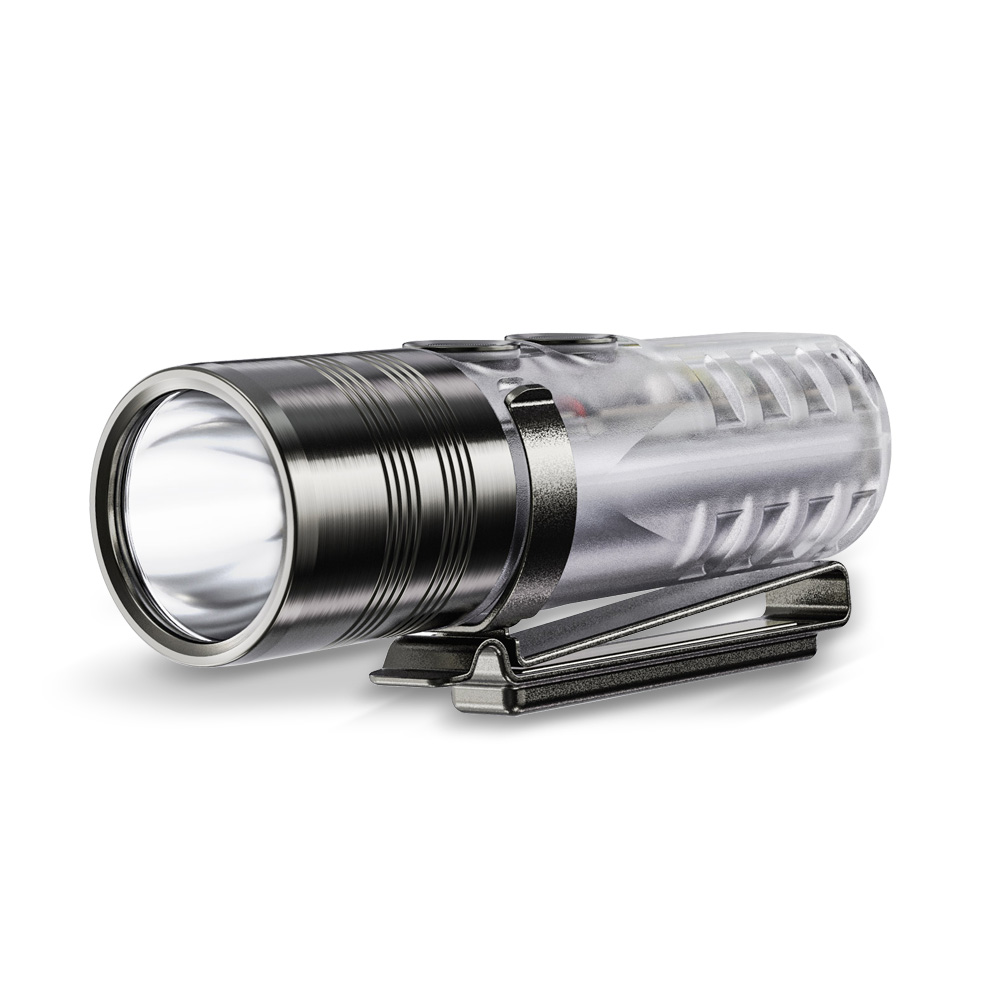 Klips stalowy. Montowany na latarce klips służy do jej przypięcia do elementu odzieży (kieszeni spodni, koszuli, rękawa), saszetki, torby, plecaka, itd. Umożliwia też przypięcie do czapki z daszkiem dając nam funkcję latarki czołowej. Jego konstrukcja sprawia, że latarkę można zamontować w obu kierunkach (diodą do przodu lub tyłu). Klips posiada też przystawkę magnetyczną by przyczepić latarkę do powierzchni metalowych.