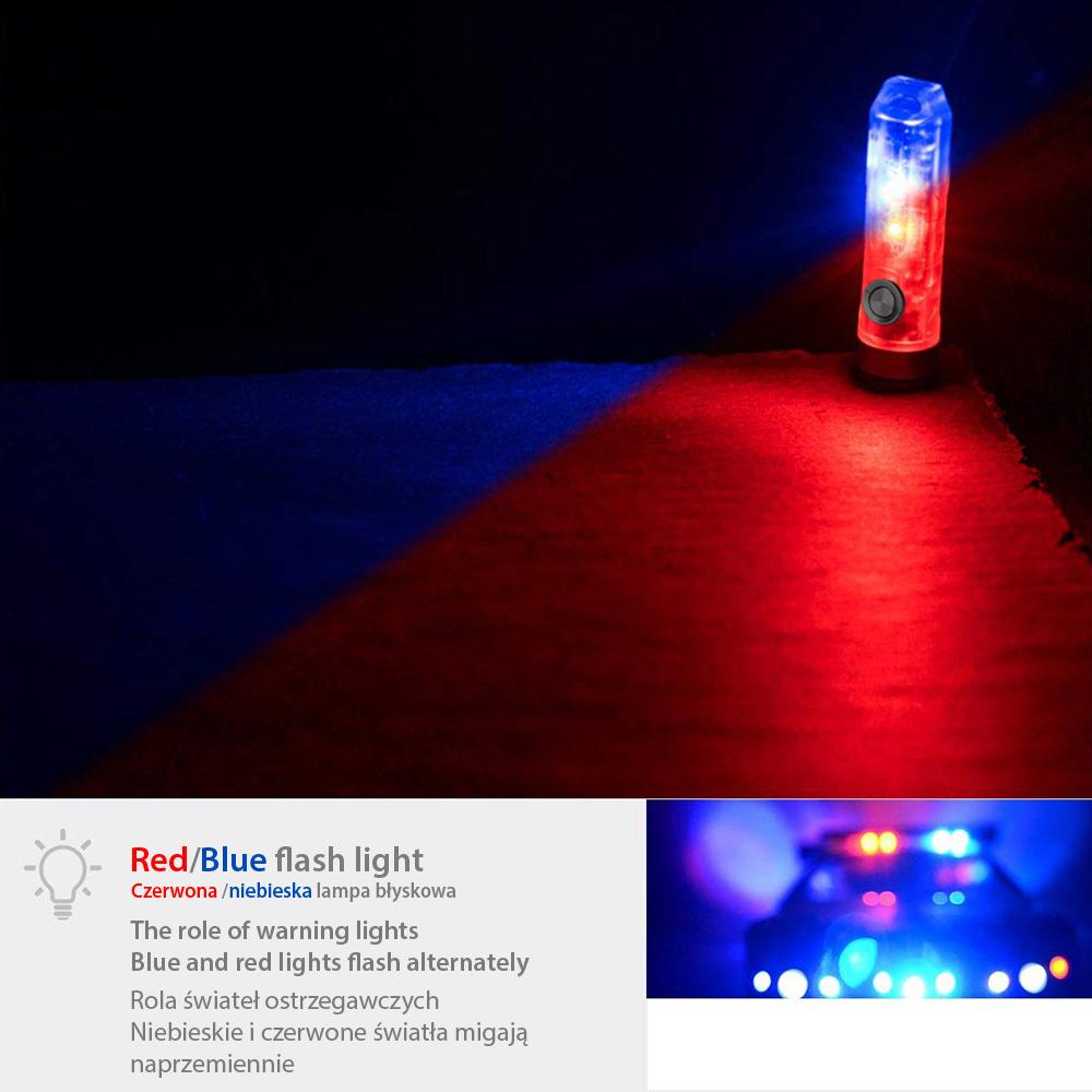 - 1) Chwilowe podświetlenie: kiedy latarka jest wyłączona, naciśnij i trzymaj, wówczas działa, zwolnij przycisk aby wyłączyć.