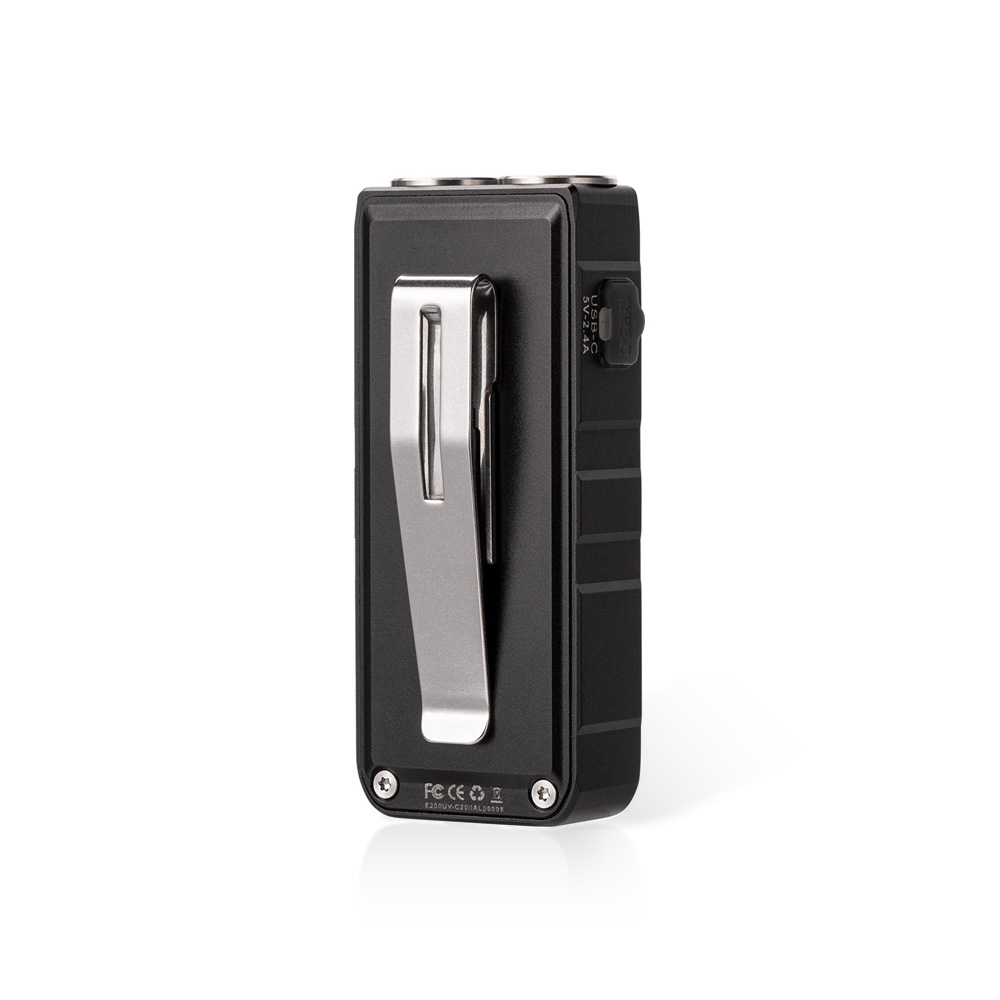 Ładowanie akumulatora następuje za sprawą szybkiego portu ładowania USB-C. Latarka posiada wskaźnik procesu ładowania, oznajmiający migającym kolorem niebieskim trwanie procesu ładowania, a ciągłym kolorem niebieskim, pełne naładowanie akumulatora. Kiedy akumulator jest na skraju wyczerpania wskaźnik zasygnalizuje rozładowanie świecąc się na kolor czerwony. Wyłączenie wskaźnika w tym przypadku następuje poprzez przyciśnięcie przycisku. Pełne naładowanie następuje po upływie 2 godzin.