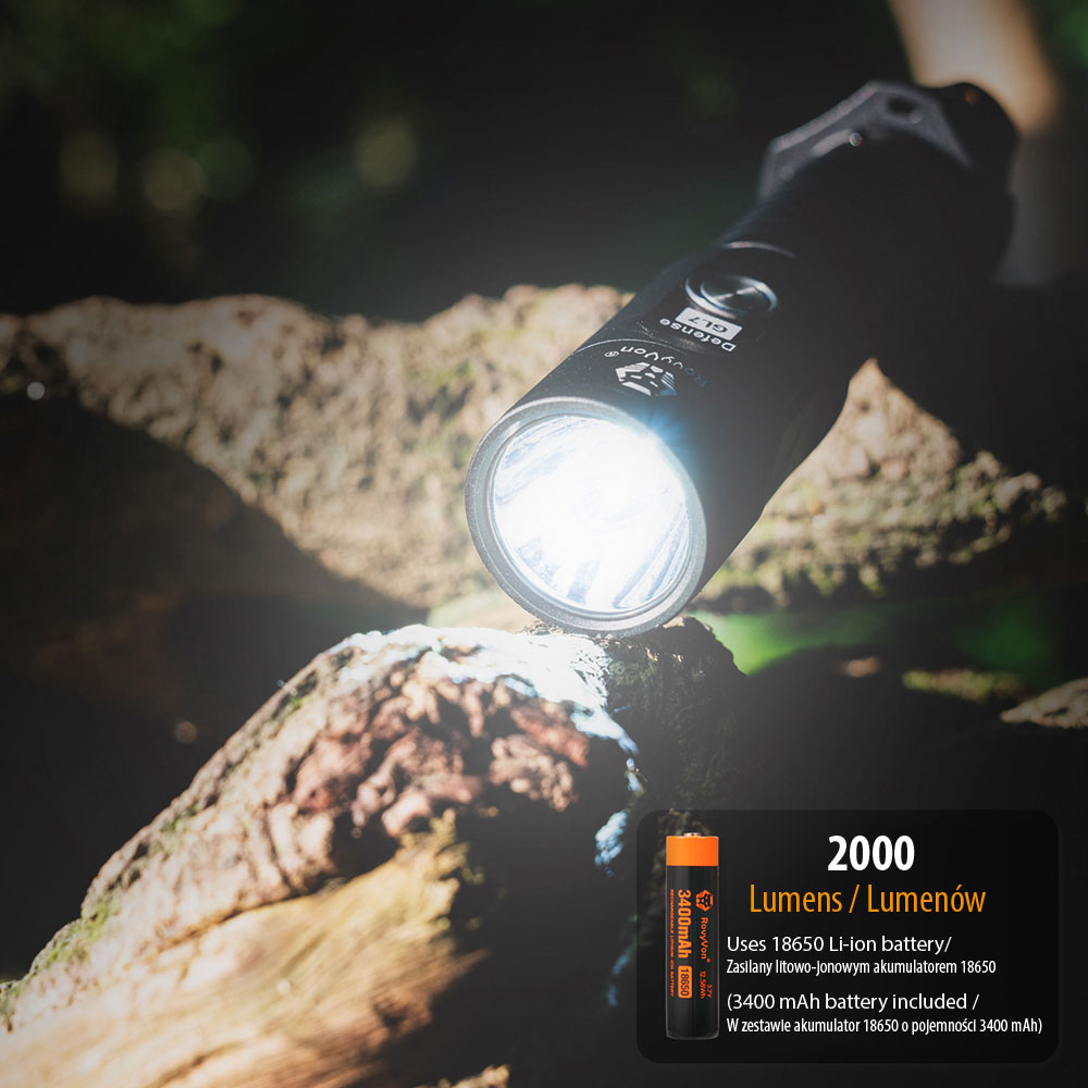 Latarka RovyVon GL7 Czarna 2000 Lumenów Akumulator 21700