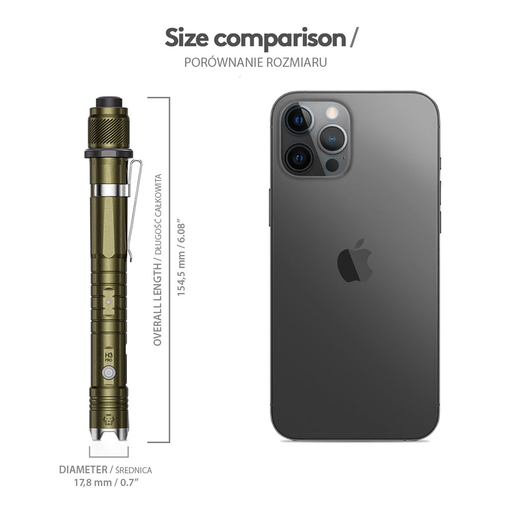 Latarka Hybrid H3 Pro ma charakter taktyczny i może służyć służbom mundurowym. Obsługiwana jest dwoma przyciskami: bocznym obsługującym przydatne funkcje codzienne oraz tylnym taktycznym szybko uruchamiającym funkcje oświetlenia TURBO oraz tryb błyskowy – STROBO. Design latarki określany jako urban tactical dopełnia demontowalny pierścień taktyczny zlokalizowany w okolicach przycisku tylnego.