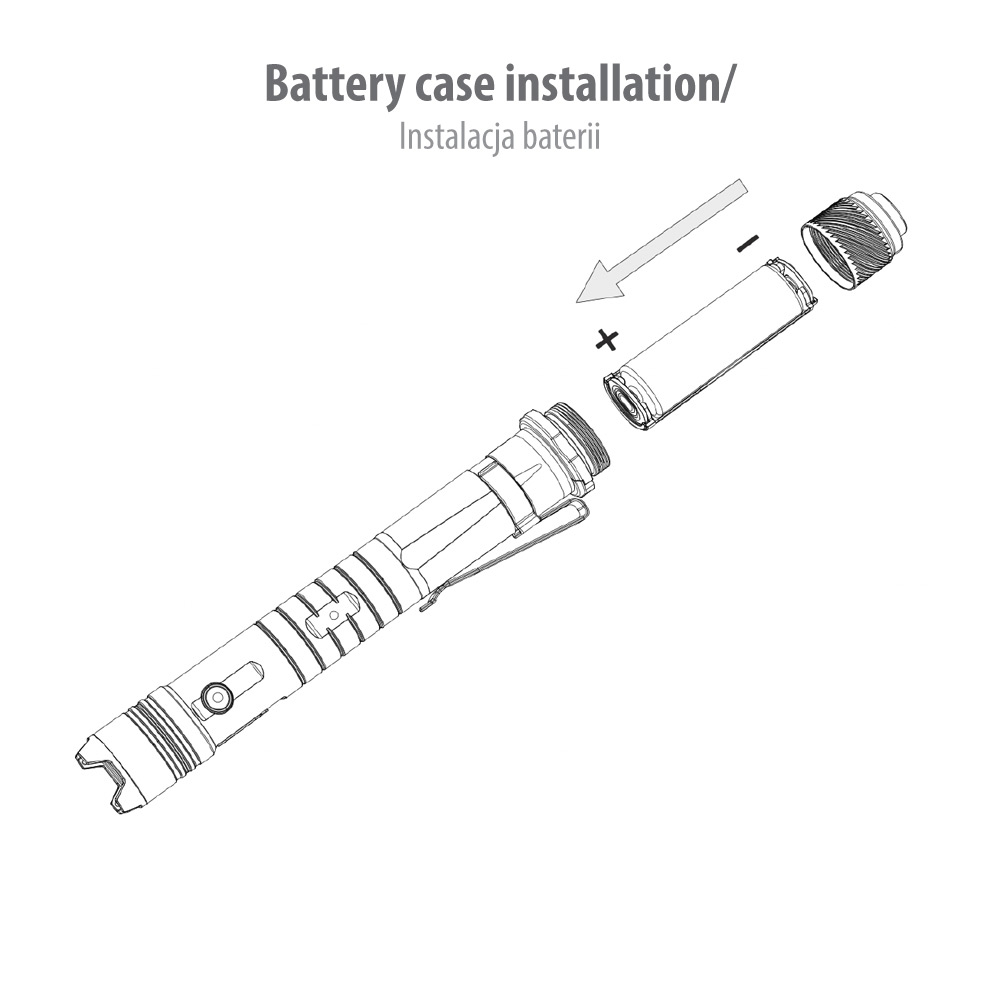 - Przyciskiem bocznym uruchamiamy 4 tryby pracy: tryb bardzo niski (moonlight), tryb niski, tryb średni, tryb wysoki. Przełączanie pomiędzy poszczególnymi trybami oświetlenia odbywa się poprzez odpowiednią ilość naciśnięć przycisku latarki.