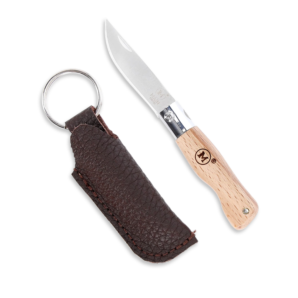 Mini Nóż Składany Brelok Do Kluczy MAIN Knives Mini Line 6001 Drop Point 440 Beech Wood z Pokrowcem to mini ostrze na zadania codzienne.