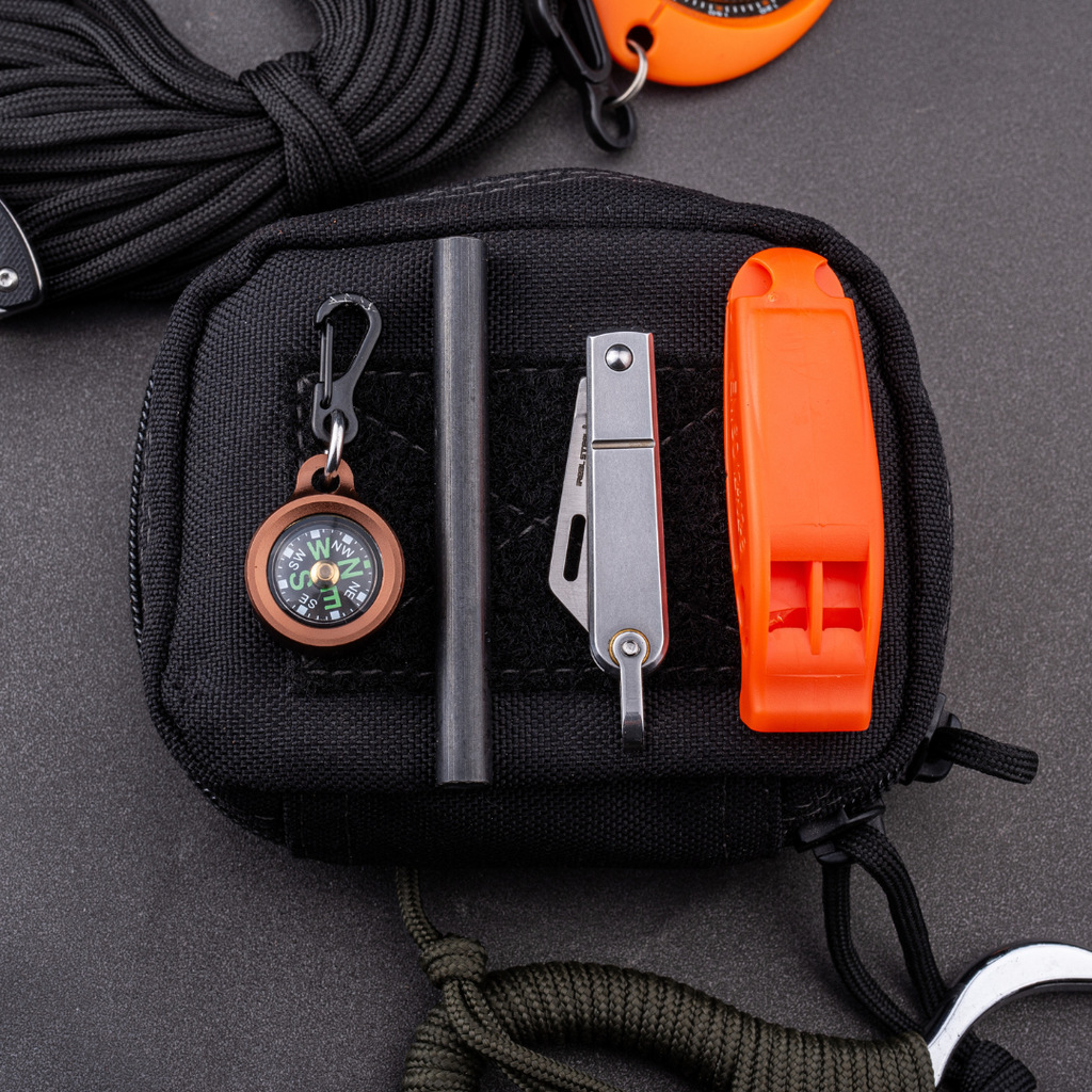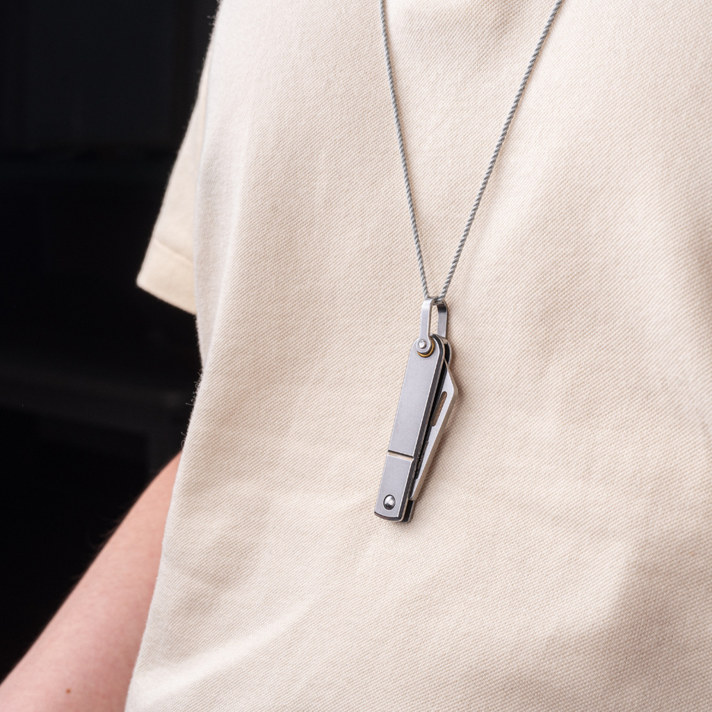 Duży, zdejmowany pierścień zwiększa możliwości przenoszenia — możesz zawiesić go na karabińczyku, nosić na szyi lub wykorzystać jako punkt mocowania linki. Idealny tam, gdzie liczy się szybki dostęp i minimalna waga.