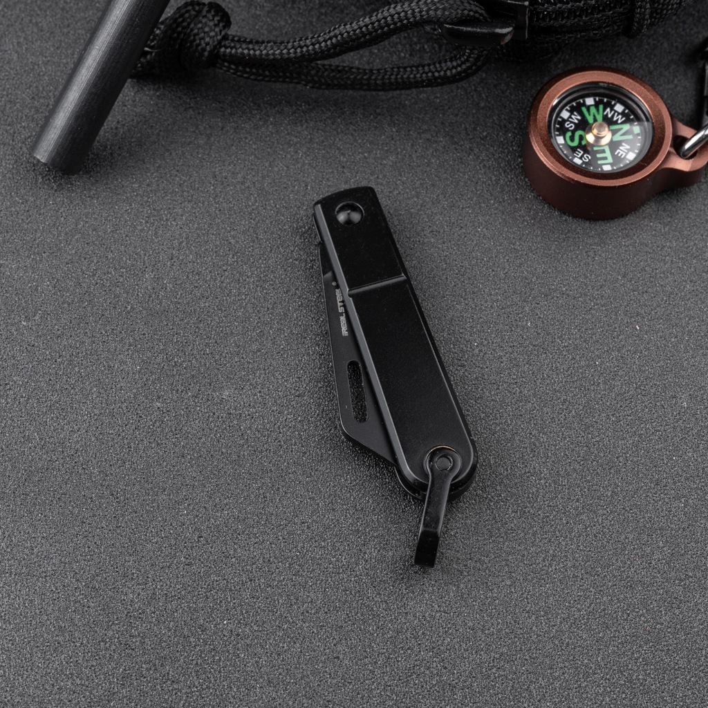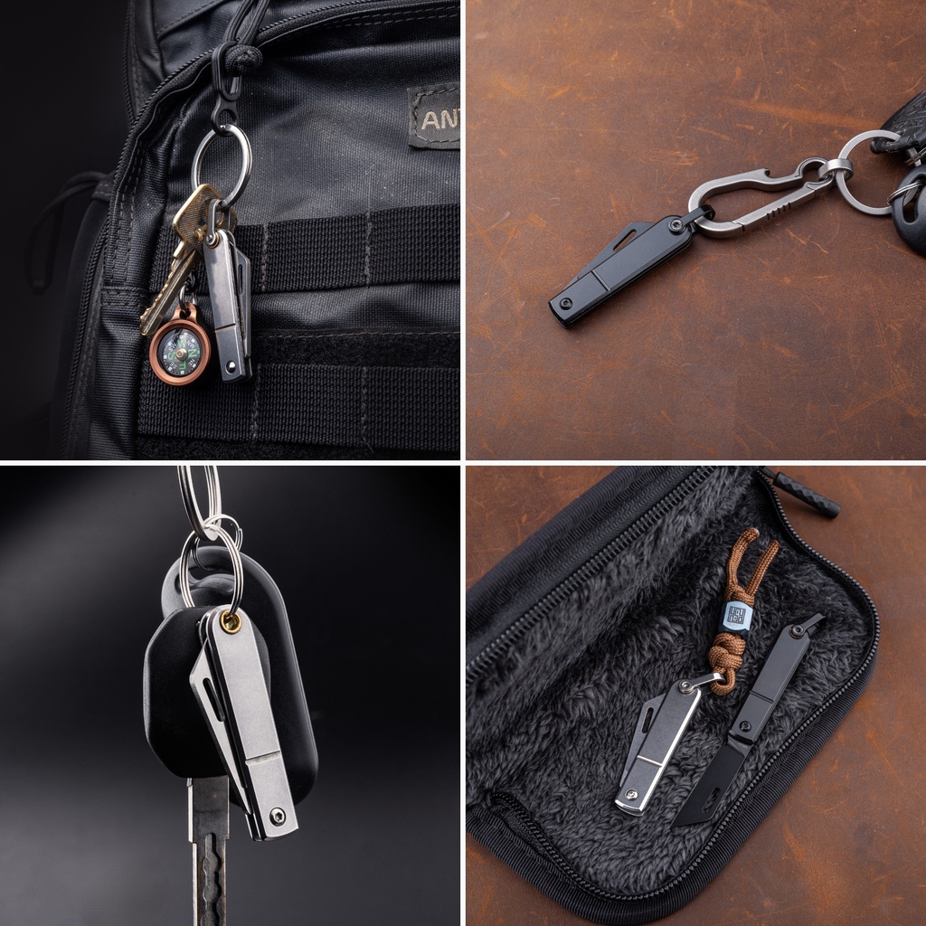 Duży, zdejmowany pierścień zwiększa możliwości przenoszenia — możesz zawiesić go na karabińczyku, nosić na szyi lub wykorzystać jako punkt mocowania linki. Idealny tam, gdzie liczy się szybki dostęp i minimalna waga.
