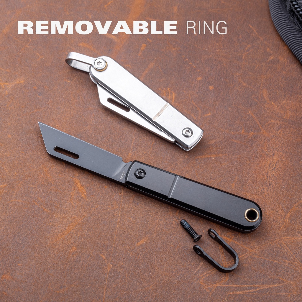 • Zdejmowany pierścień – duży, praktyczny ring pozwala łatwo dopasować sposób przenoszenia noża do własnych potrzeb. Można go: