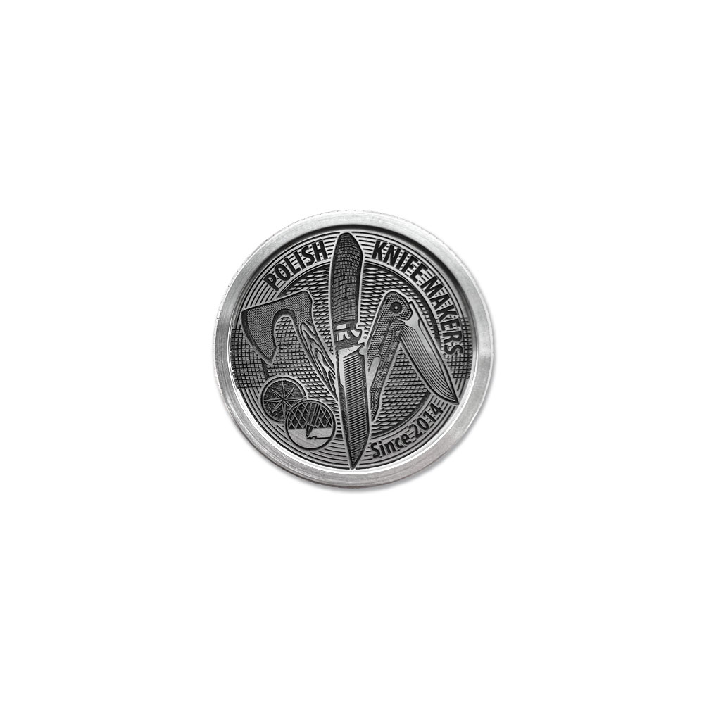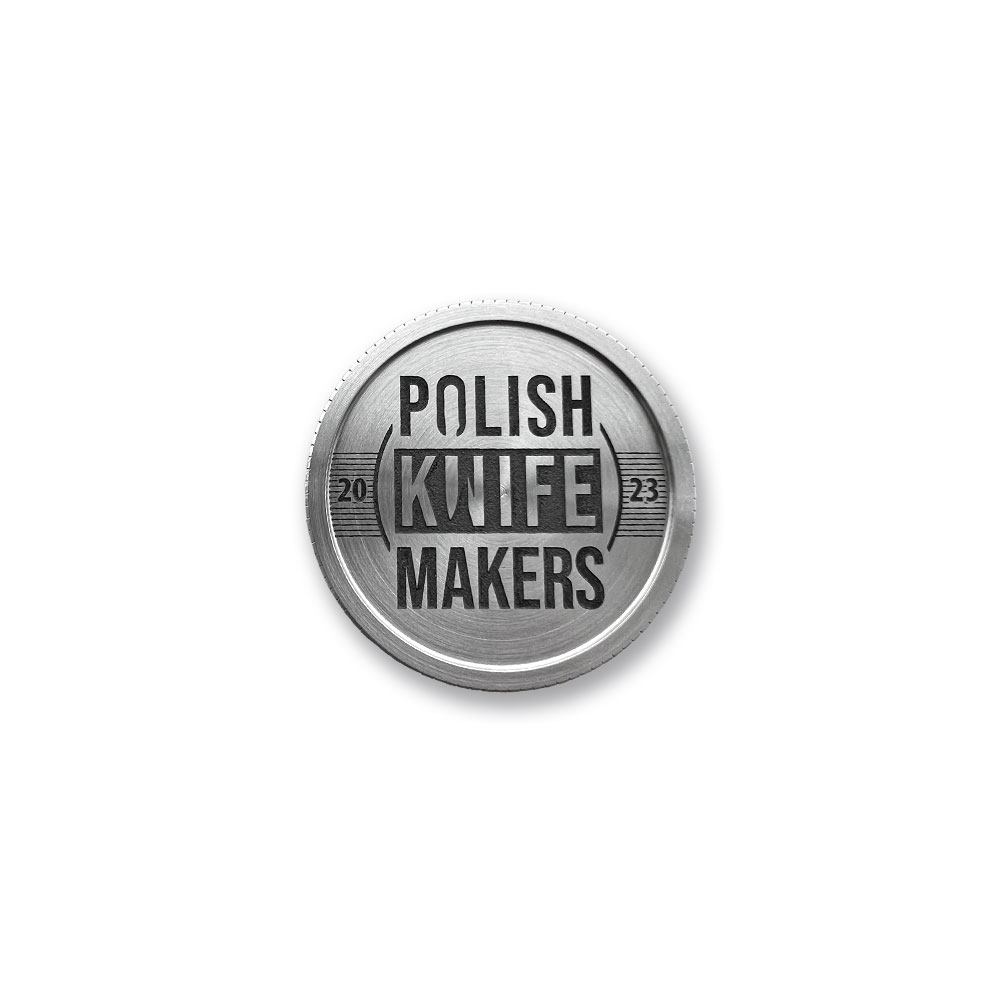 Moneta Polish Knifemakers Coin 2023 | Custom EDC Coin. Wyjątkowa moneta okolicznościowo-pamiątkowa nawiązująca bezpośrednio do społeczności utalentowanych rzemieślników z Polski i miłośników ich twórczości. Moneta Polish Knifemakers Coin 2023 to małe akcesorium, którym zajmiesz swoje dłonie podczas nerwowego dnia w pracy i uspokoisz umysł (nawiązanie do „worry stone”). To również świetny gadżet, który idealnie wkomponuje się w skład sprzętu codziennego użytku (EDC – EveryDay Carry) i odnajdzie się w kieszeni spodni czy saszetce biodrowej. To także atrakcyjny element setu codziennego, który z przyjemnością uwiecznisz na zdjęciu i zaprezentujesz innym fanom gadżetów EDC na grupach tematycznych w sieci i w mediach społecznościowych.