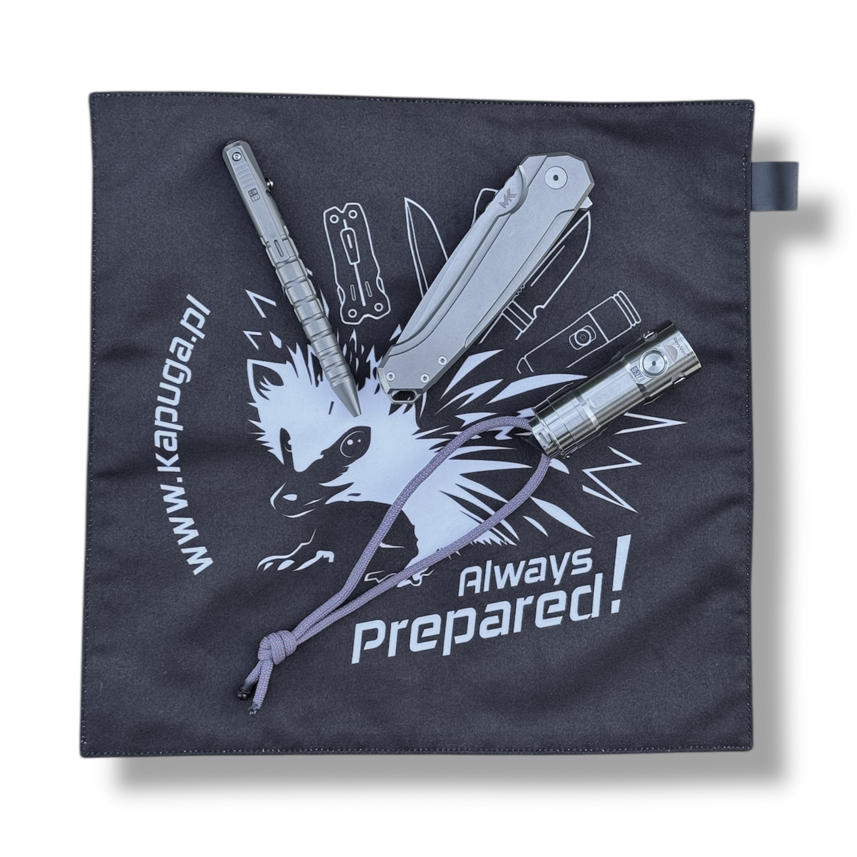 **WYKONANIE: Mr. Mruk**: Wykonanie w krawieckiej pracowni specjalizującej się w tworzeniu chustek dla świata EDC. Staranna jakość, ręczna precyzja i pasja rękodzielnicza w jednym. Ekologiczne materiały i świetna jakość pracy, co widać już na pierwszy rzut oka. Zaproszenie Mr. Mruk do współtworzenia projektu nie było przypadkowe!