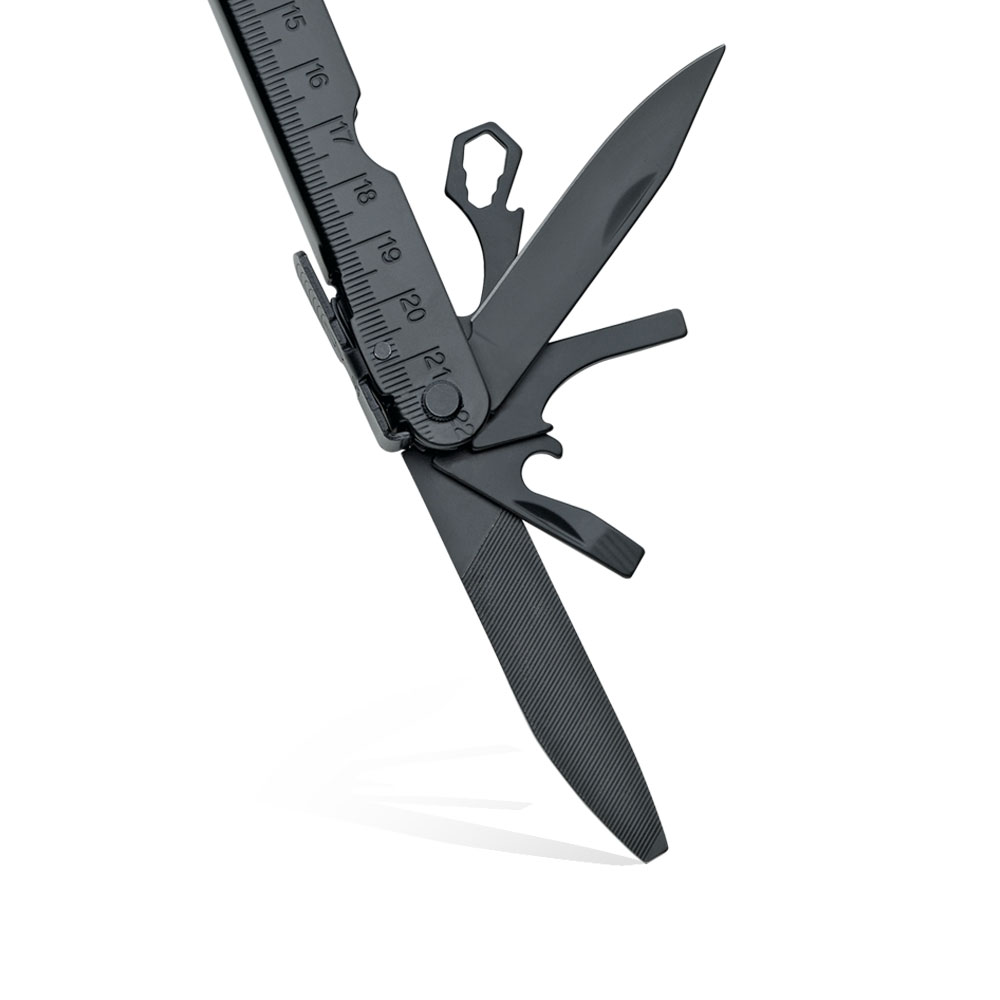 - Miarka calowa (po pełnym rozłożeniu multitoola dająca zakres mierzenia do 9 cali (9″)).