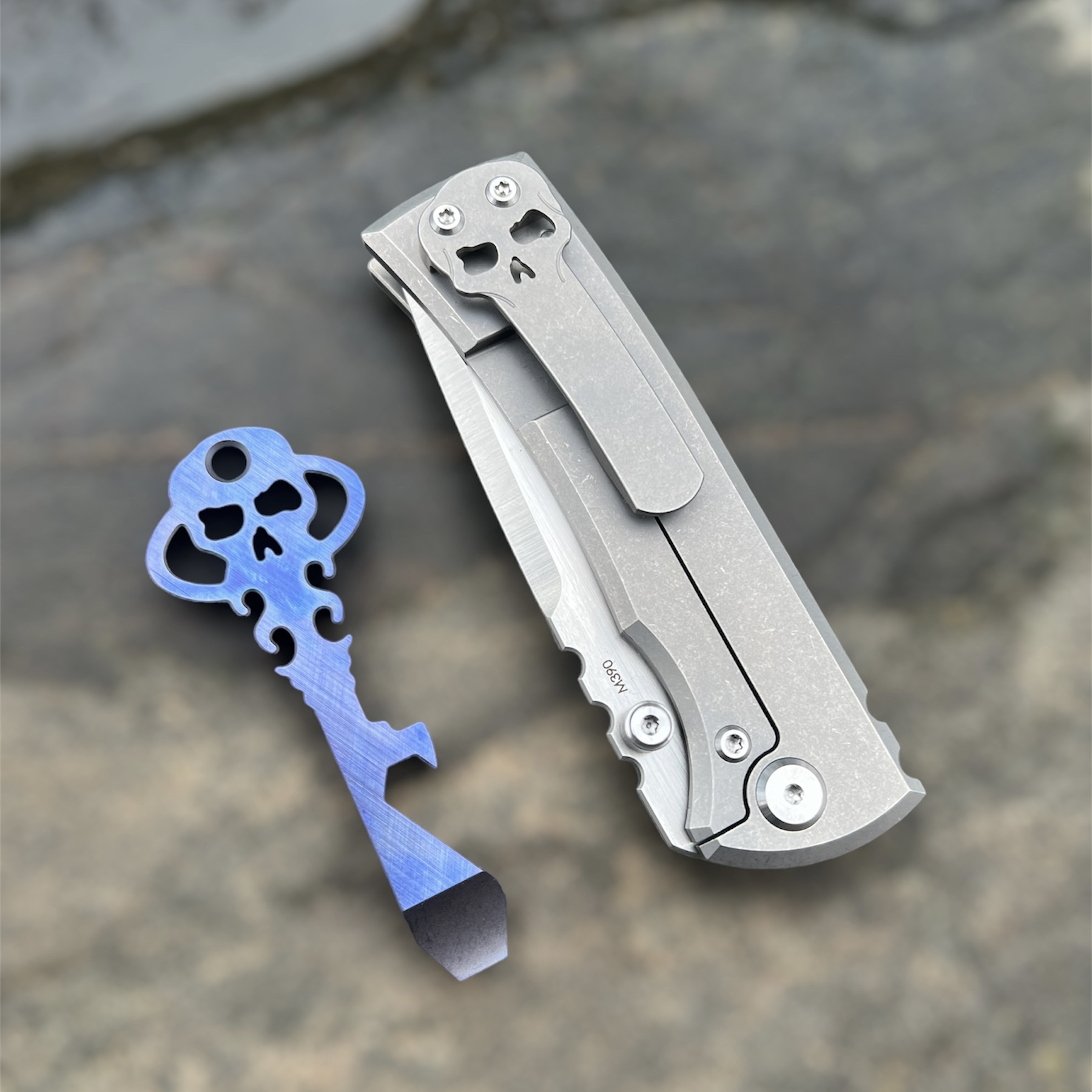 Multitool Chaves Knives Łom Otwieracz Klucz tytanowy CrossHatch PURPLE to kompaktowe narzędzie wykonane z anodyzowanego na kolor fioletowy tytanu, z wykończeniem crosshatch (przecinające się linie), posiadające wiele zastosowań. Może być brelokiem lub gustowną zawieszką na szyję. Jego podstawowe funkcje to łom, otwieracz do butelek, klucz płaski 1/4″ oraz śrubokręt. Charakterystyczny dla producenta motyw czaszki wpisany jest w kształt klucza.