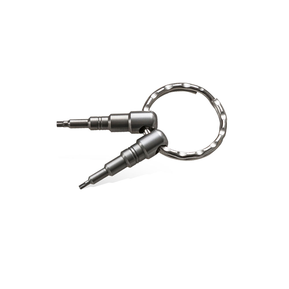 KKR 68 to brelok z bitami Torx T6 i Torx T8 do pozycjonowania lub montażu/demontażu płetwy (flippera) w nożach LionSTEEL z systemem ReF, kołków i klipsa T.R.E. Może być również stosowany do wszystkich innych noży z Torx T8 i Torx T6. Pozwoli wyregulować piwot, dokręcić śrubki rękojeści. Może być zawsze pod ręką dzięki kółku do noszenia przy kluczach.