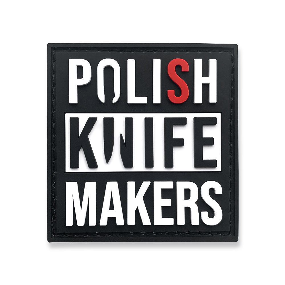 Naszywka Polish Knifemakers wykonana jest w technologii 3D. Materiał patcha to trwała i wodoodporna guma PVC. Naszywka posiada trwale przyklejoną warstwę rzepa z haczykami oraz warstwę z wyciętym na jej kształt pluszem, który w razie potrzeby można przyszyć do ubrania w celu umożliwienia mocowania.